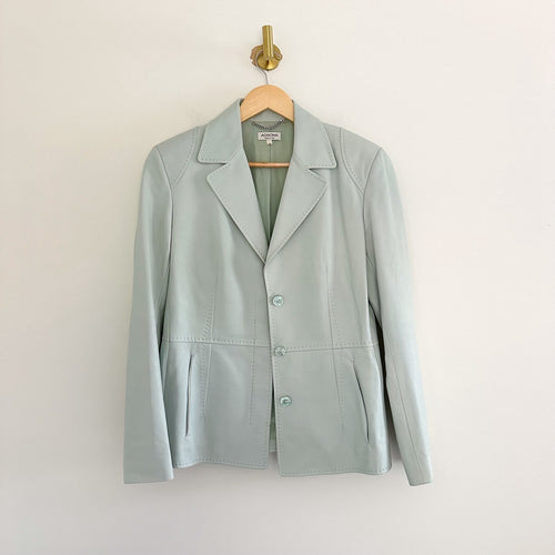 Agnona Leather Single-Breasted Lined Blazer Green 46