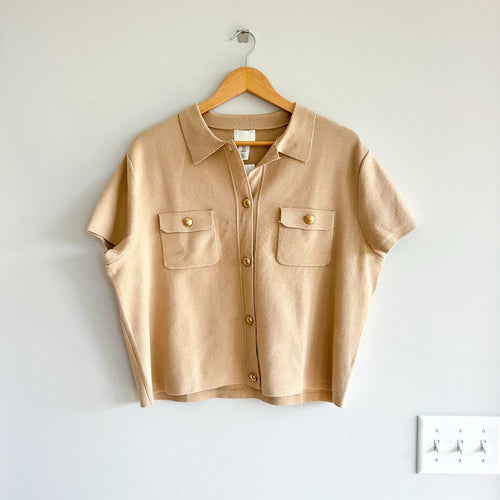 H&M Short Sleeve Button Up Cardigan Sweater Beige Gold XL NWT