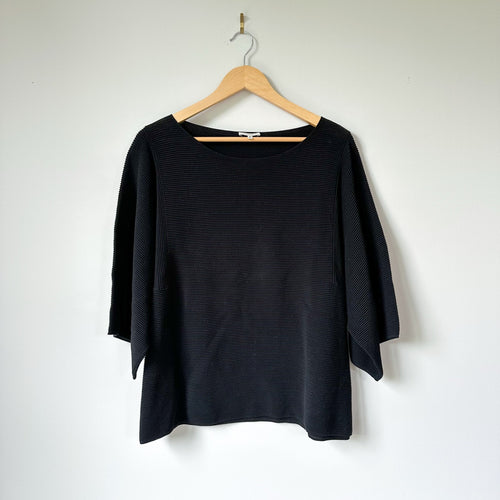Lafayette 148 New York Ribbed Round Neck 3/4 Sleeve Pullover Sweater Black L