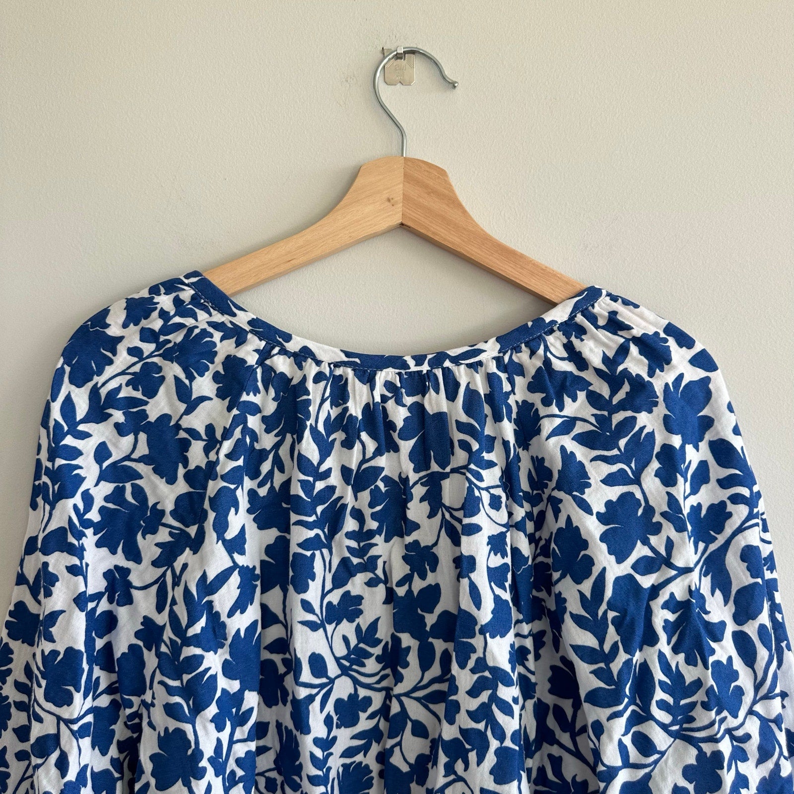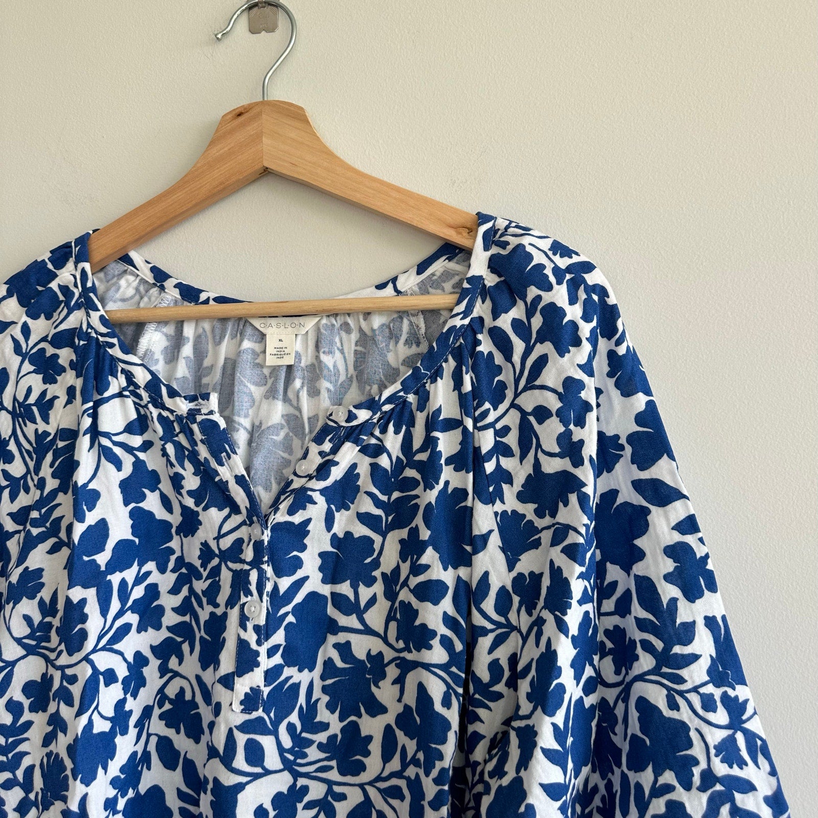 - Features: Floral print, 1/4 button closure, short sleeves