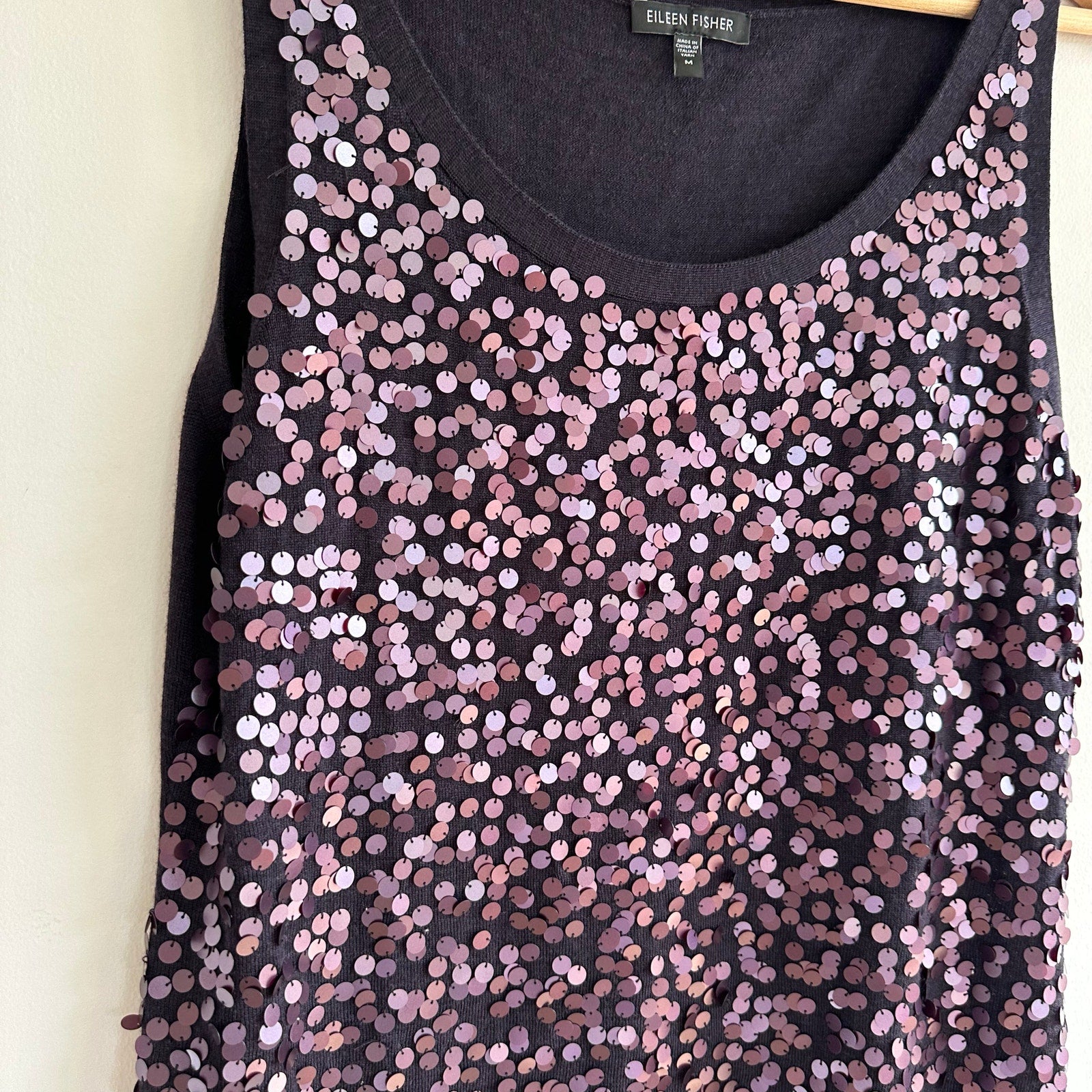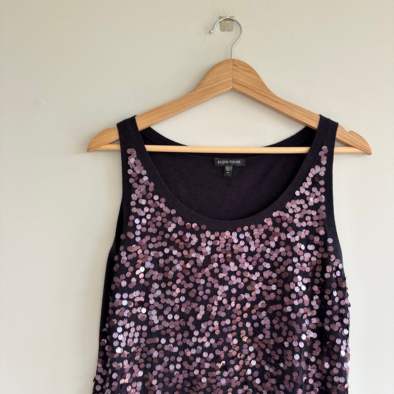 - Eileen Fisher Merino Wool Sequin Sleeveless Tank Top Purple R0MSF