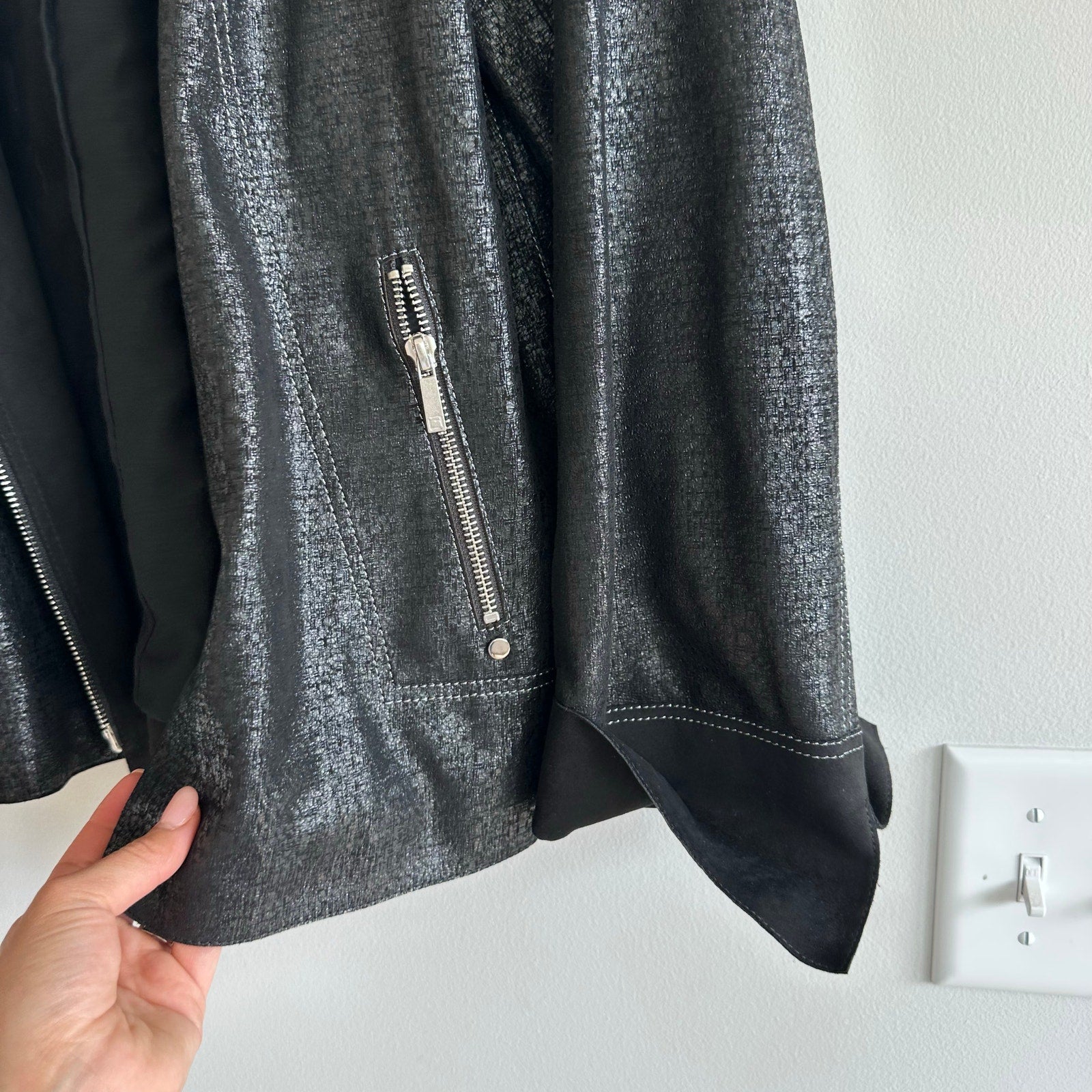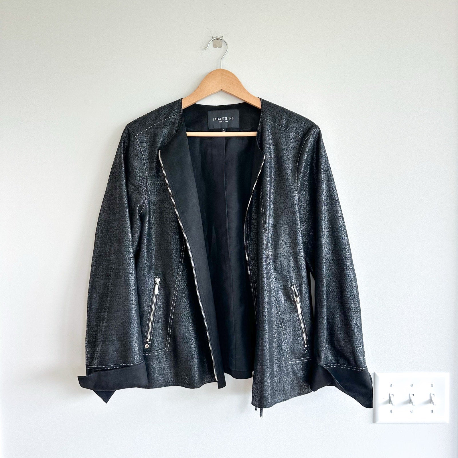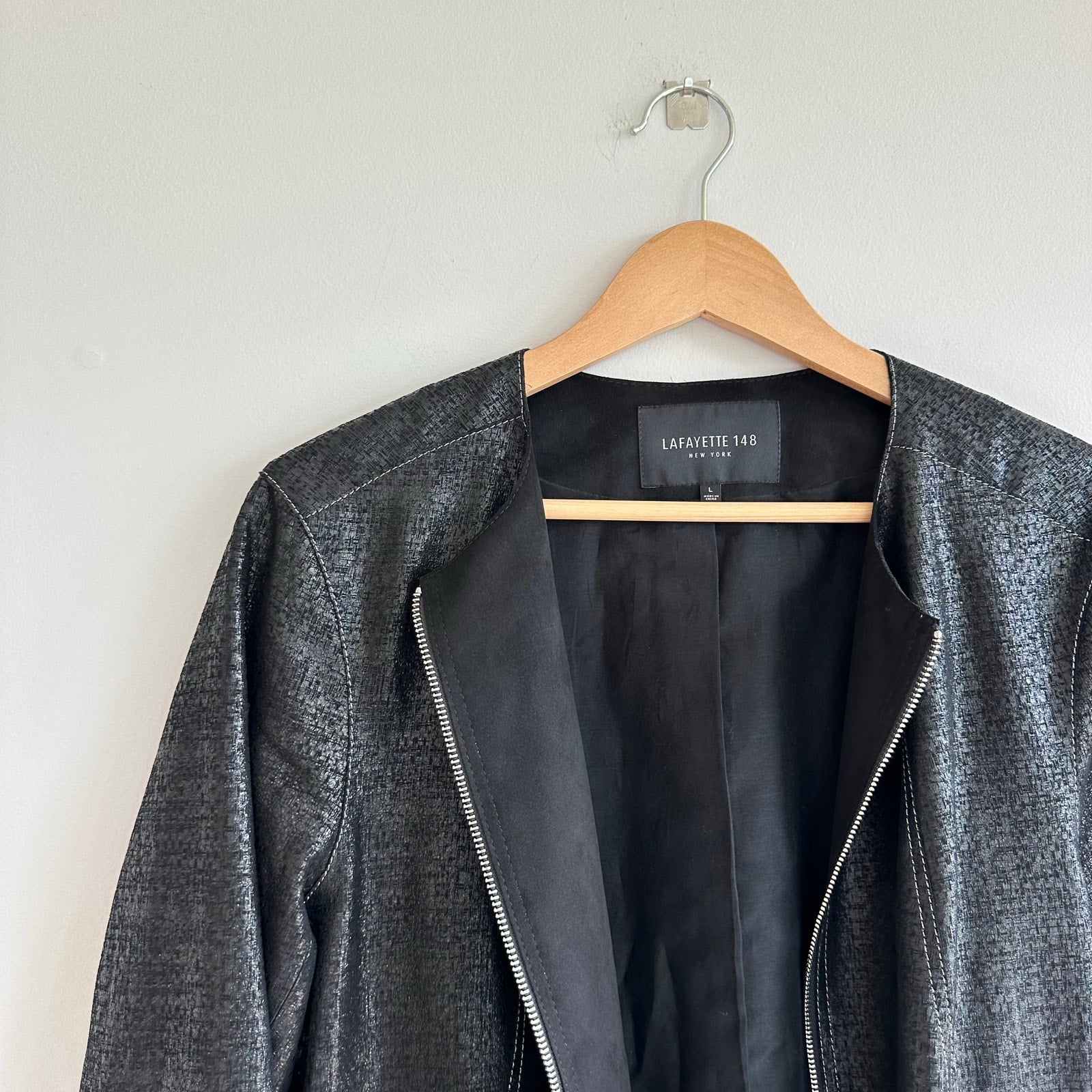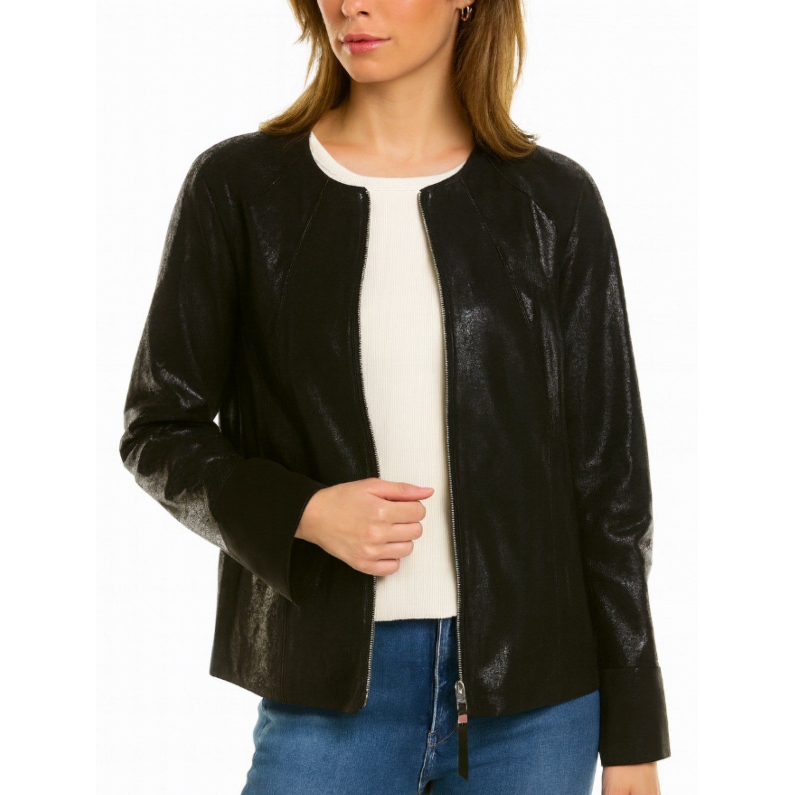 - Lafayette 148 Anasophia Leather Metallic Jacket in Black Metal