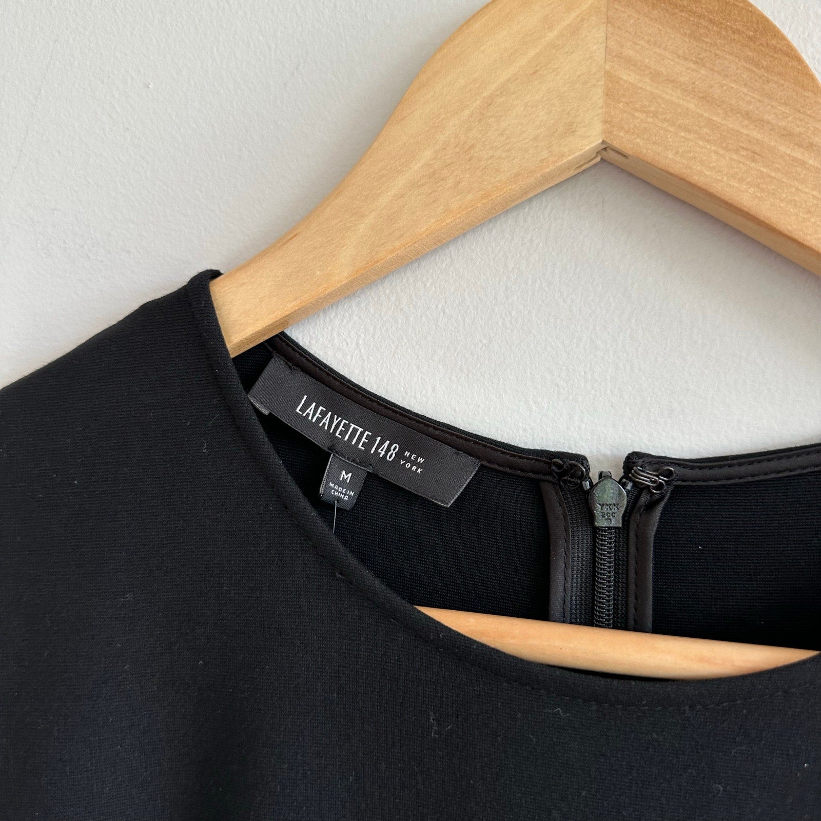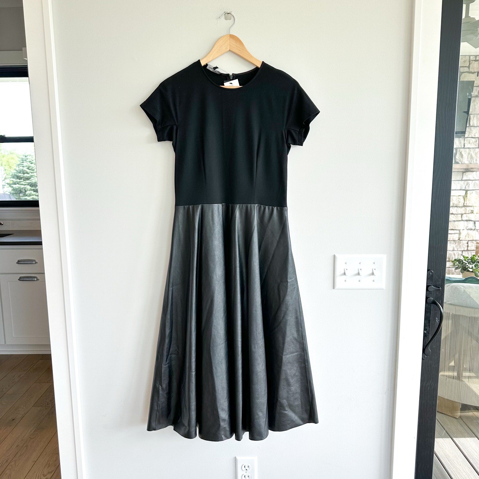 - Lafayette 148 New York Faux Leather Short Sleeve A-Line Dress