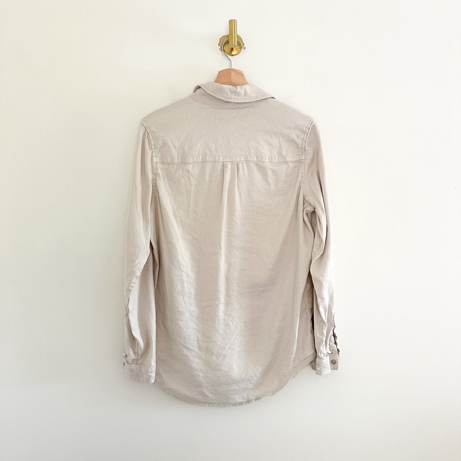Details: Level 99 Gina Button Front Collared Long Sleeve Casual Shirt Jacket - Size: S- Color: Brown- Material: 51% Linen, 46% Lyocell, 3% Spandex- Features: Button front closure, collared, long sleeve, pockets, high low hem, machine wash, comfort, breathable, casual. A safari inspired utility shirt jacket crafted in stretch linen Tencel™ lyocell. Designed with utilitarian lines, two front flap snap pockets, patch pockets and snap button closure. A versatile silhouette to wear over a button down or wear as a slightly oversize tomboy shirt with rolled sleeves.