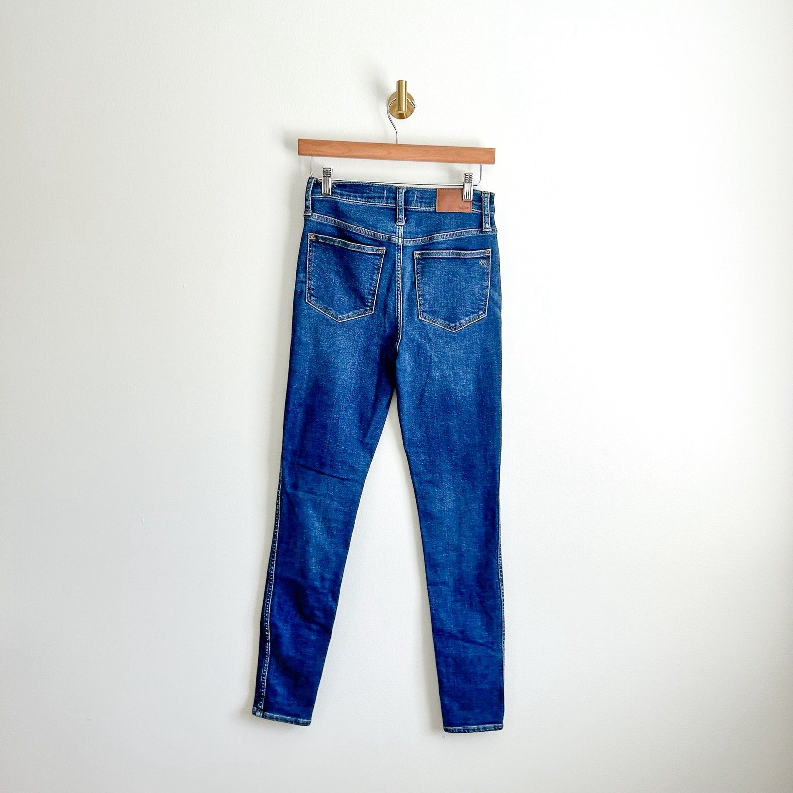 Details: Madewell Tall 10" High Rise Denim Medium Wash Skinny Jeans - Size: 26T - Color: Blue- Material: - Features: Denim, high rise waist, belt loops, skinny leg, medium wash, zipper fly with button waist, logo, everyday, basic, comfort. MA621