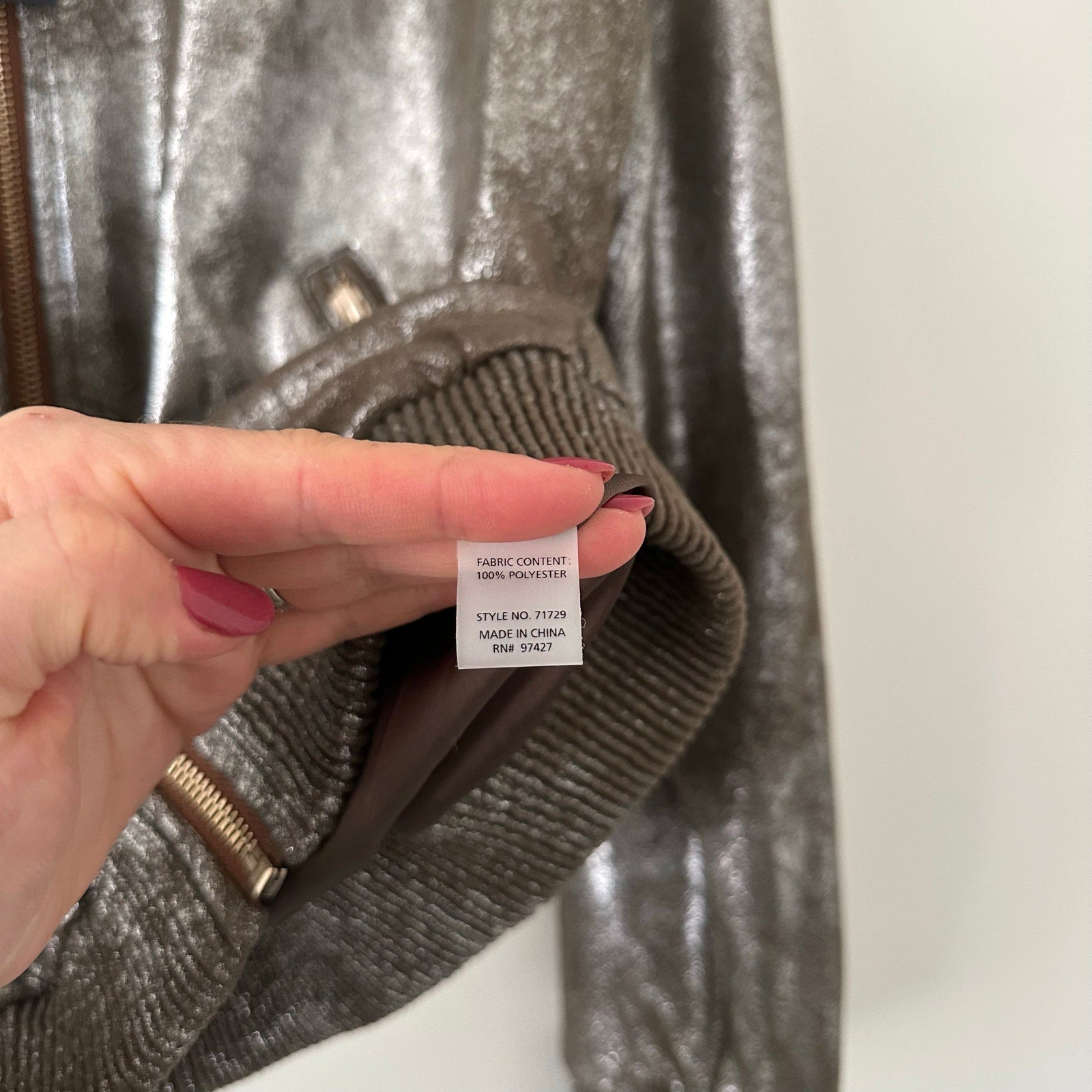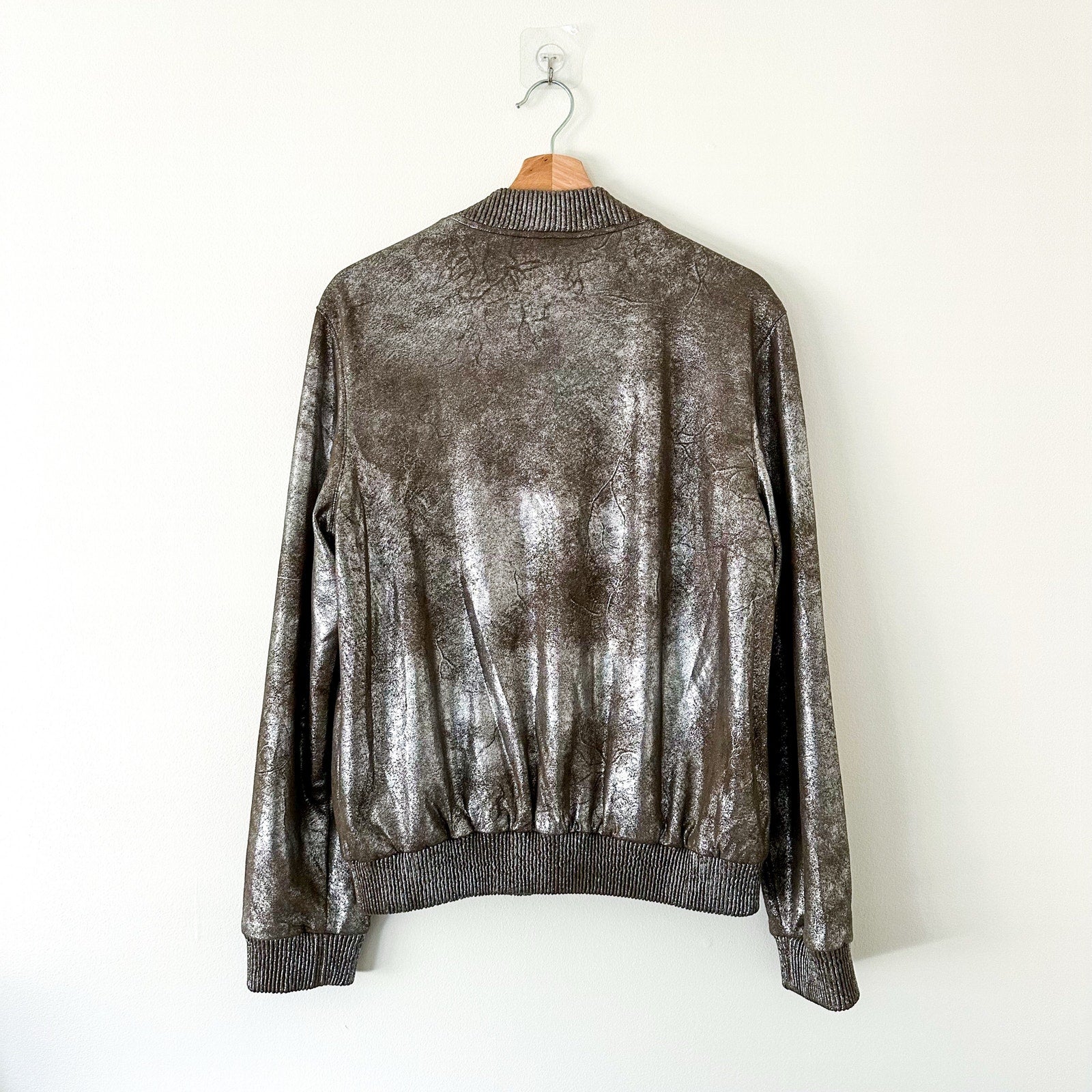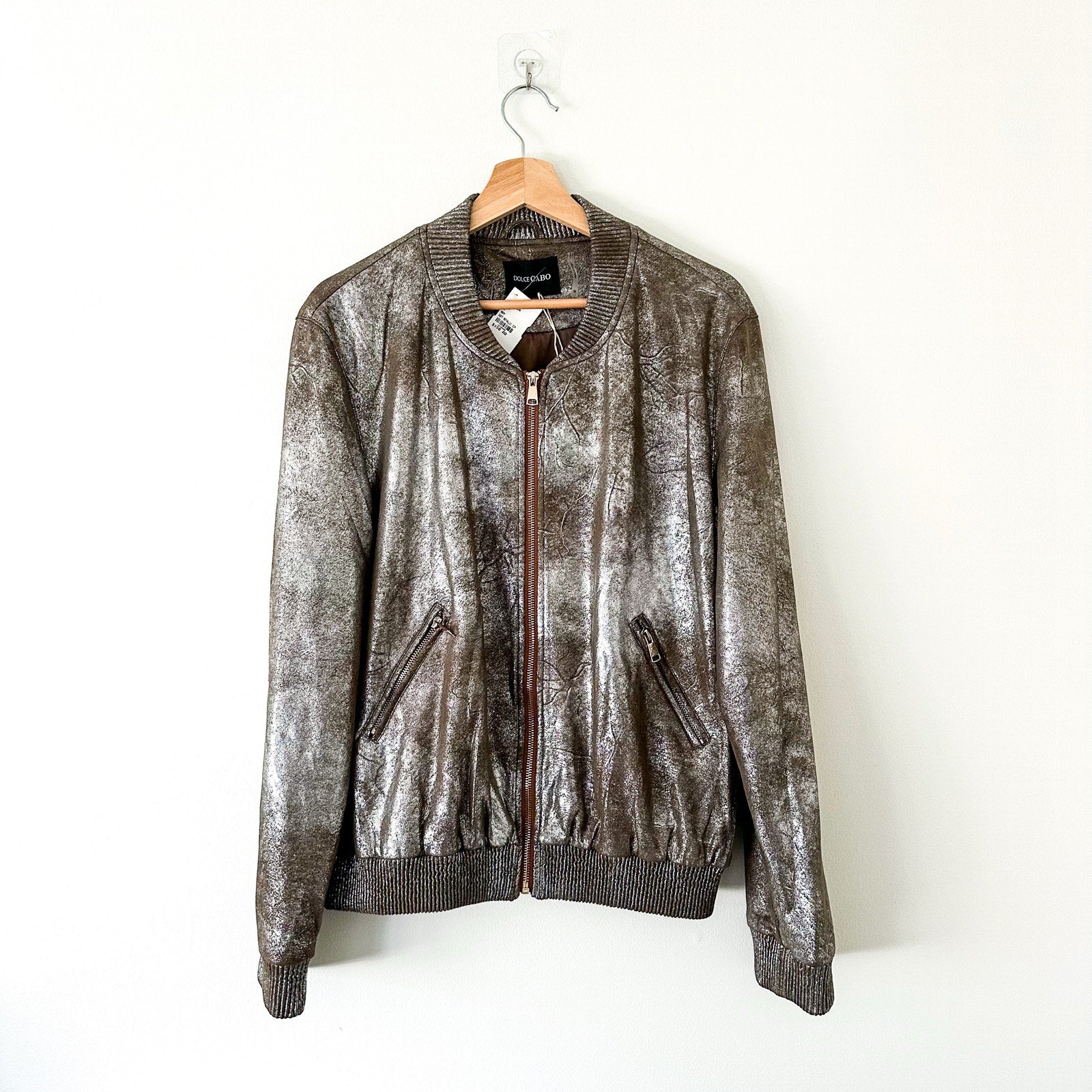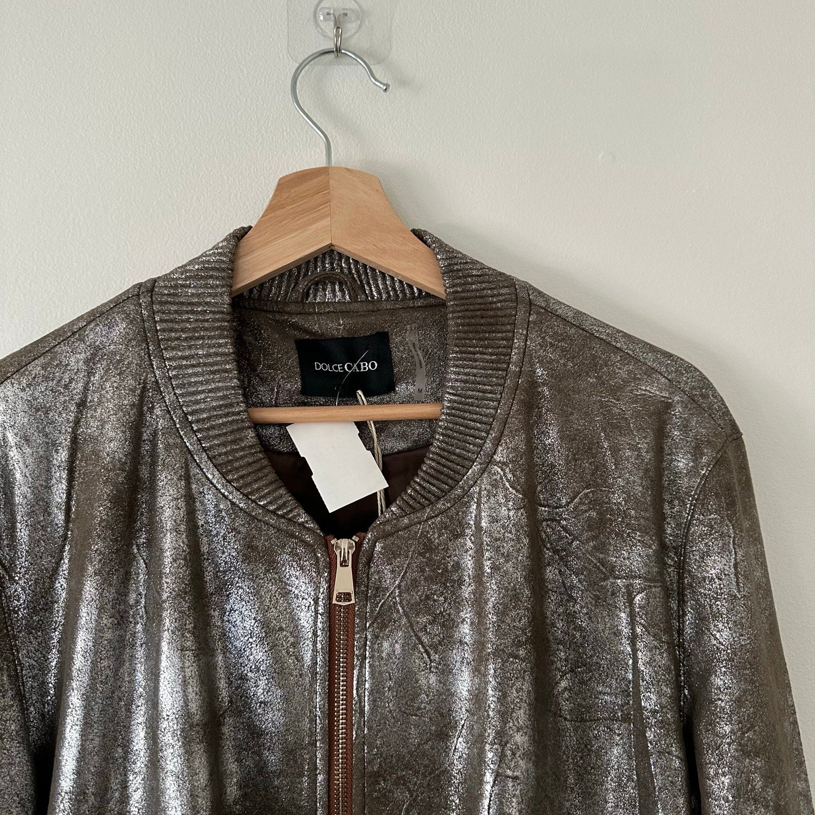 NWT Dolce Cabo Soft Metallic Zip Up Bomber Army Jacket M