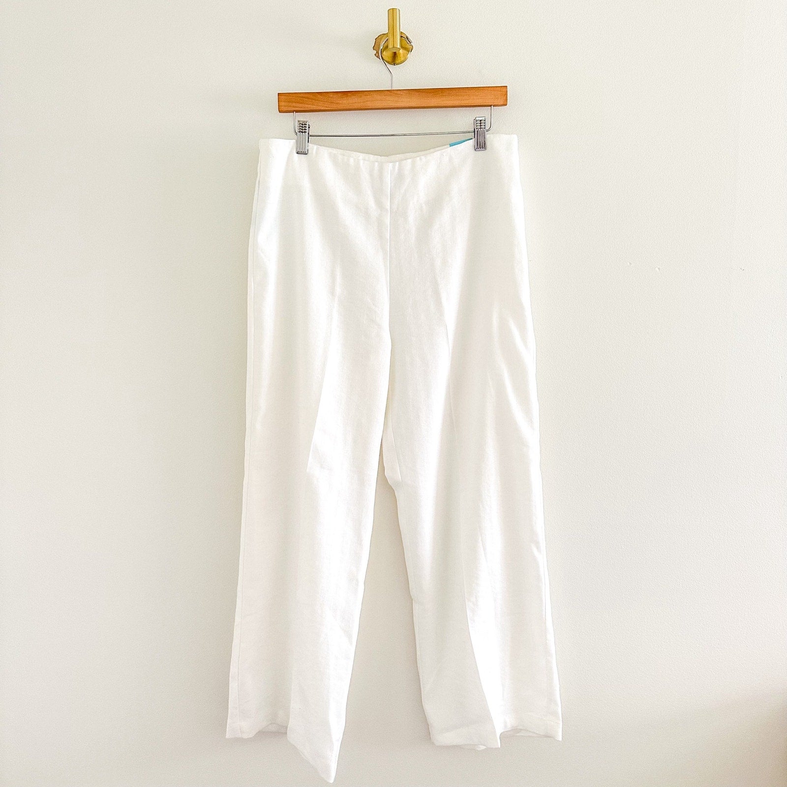 Details: J. McLaughlin Carter High Rise Linen Blend Cropped Casual Pants - Size: 12- Color: White- Material: 78% Linen, 22% Sorona- Features: High rise waist, cropped, straight leg, hidden side zip closure, lightweight, flat front, comfort, breathable, casual.
