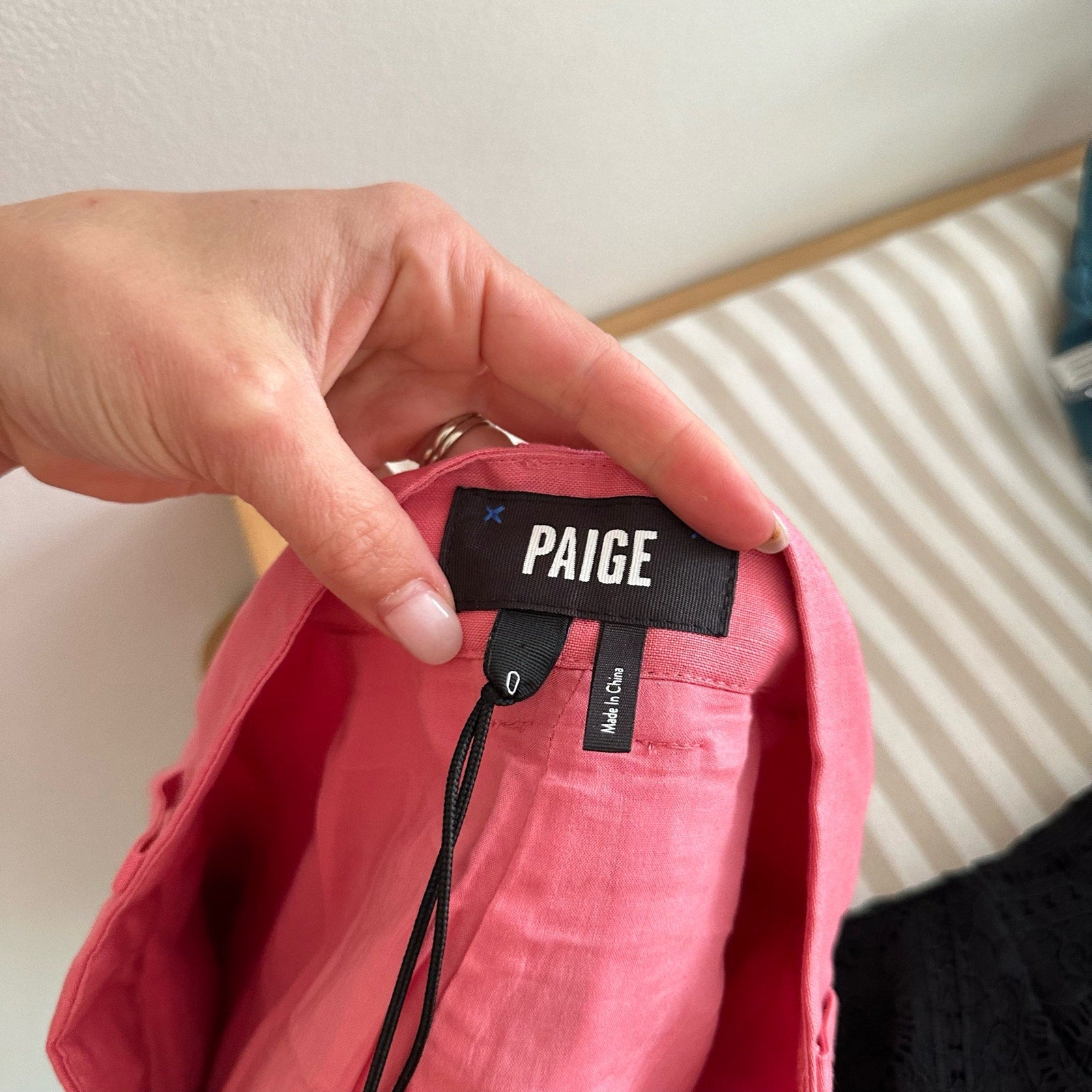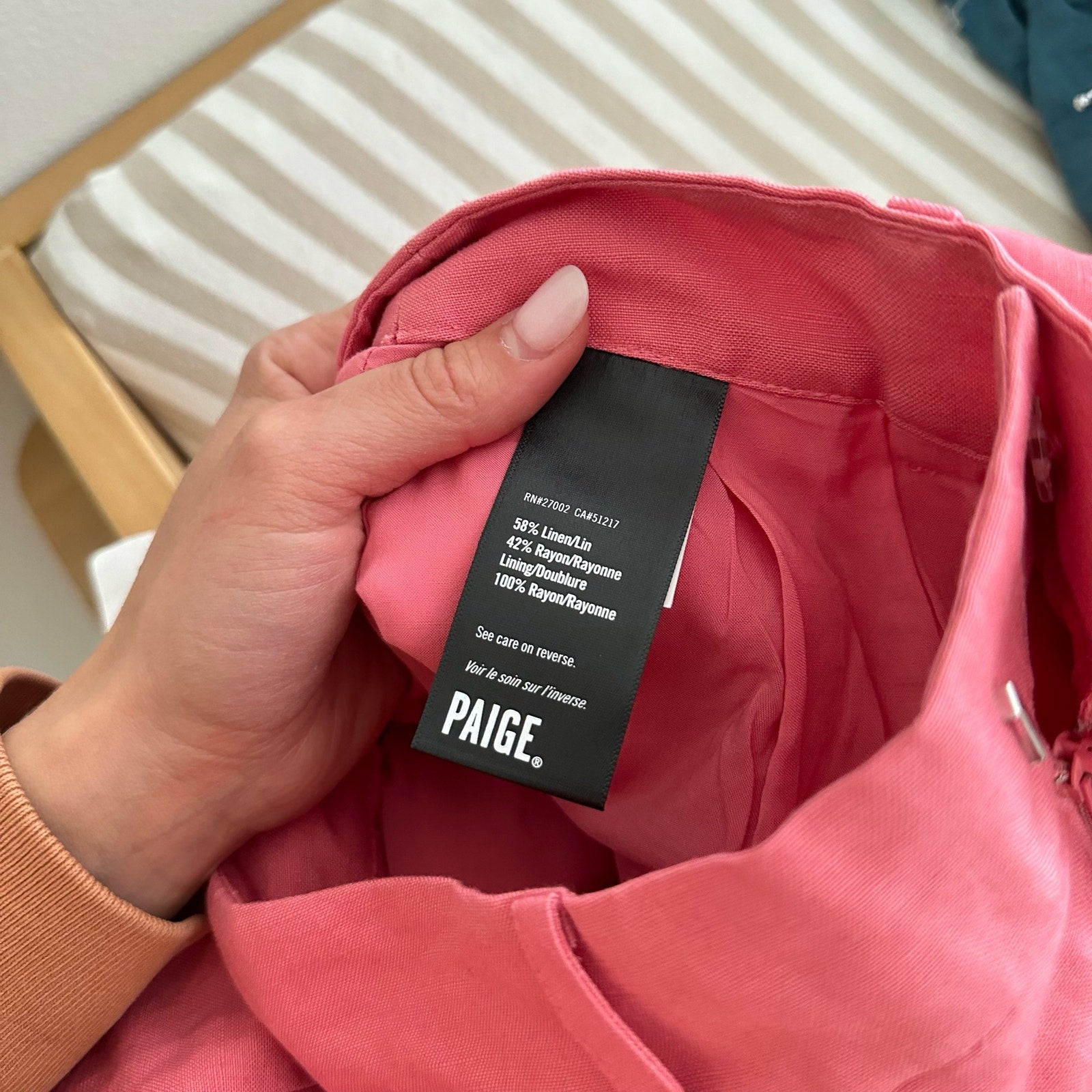 Details: PAIGE Andie High Rise Pleated Short - Size: 0- Color: Pink - Dusty Bubblegum- Material: 58% Linen, 42% Rayon- Features: High rise waist, pleated, belt loops, slash and welt pockets, lined, zipper fly with hook & loop closure, hand wash, comfort, breathable, casual.Want to buy this on Poshmark? Shop this item & 1500+ more here: https://poshmark.com/closet/handpickedbyhan