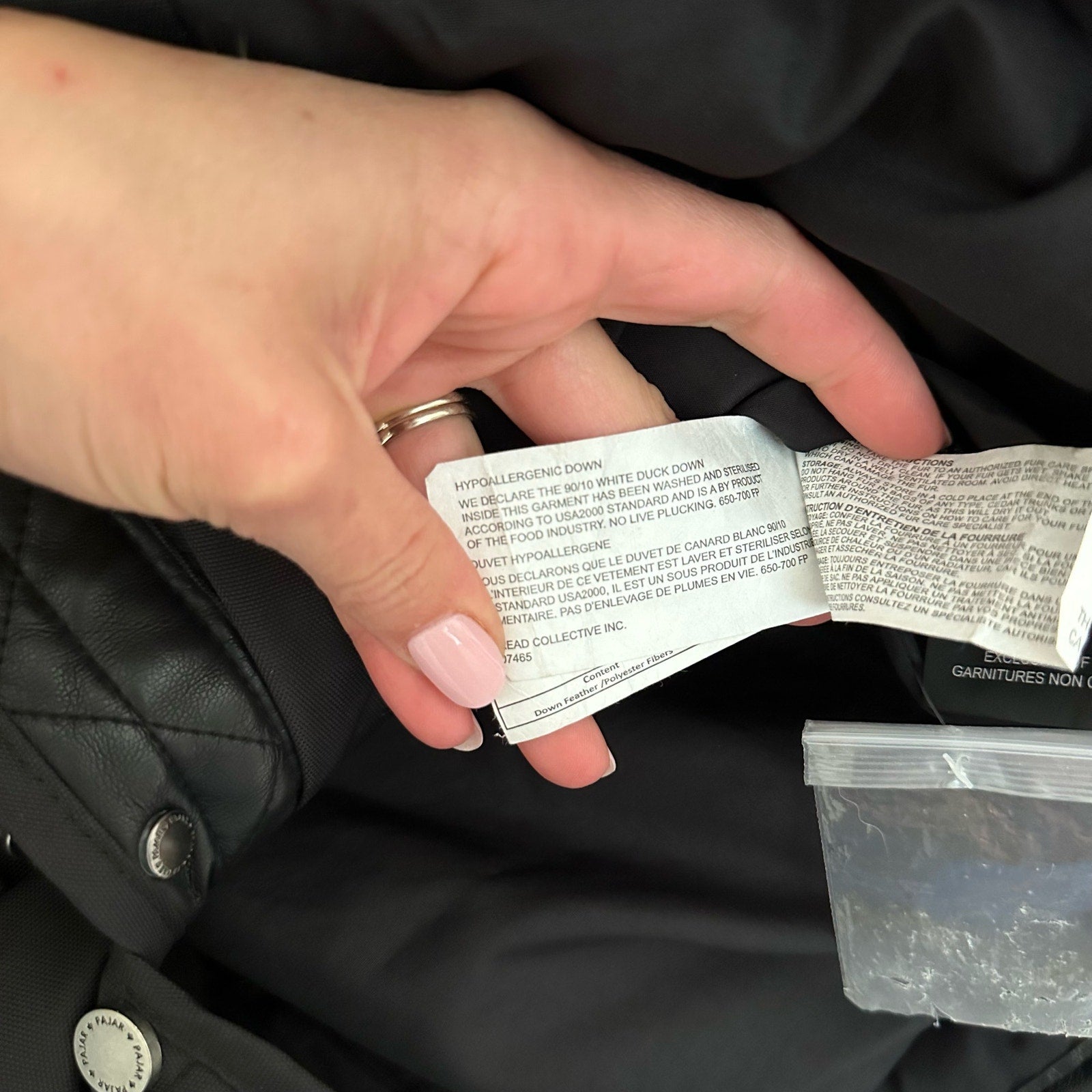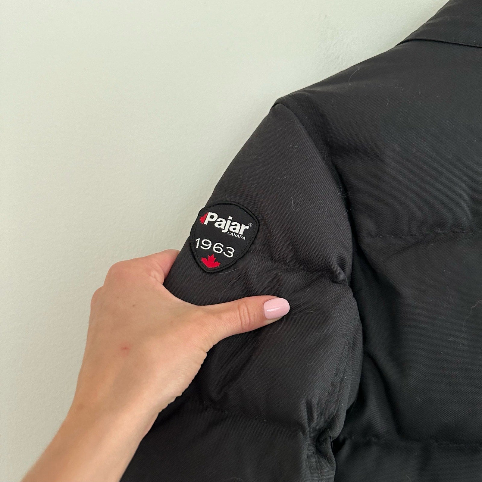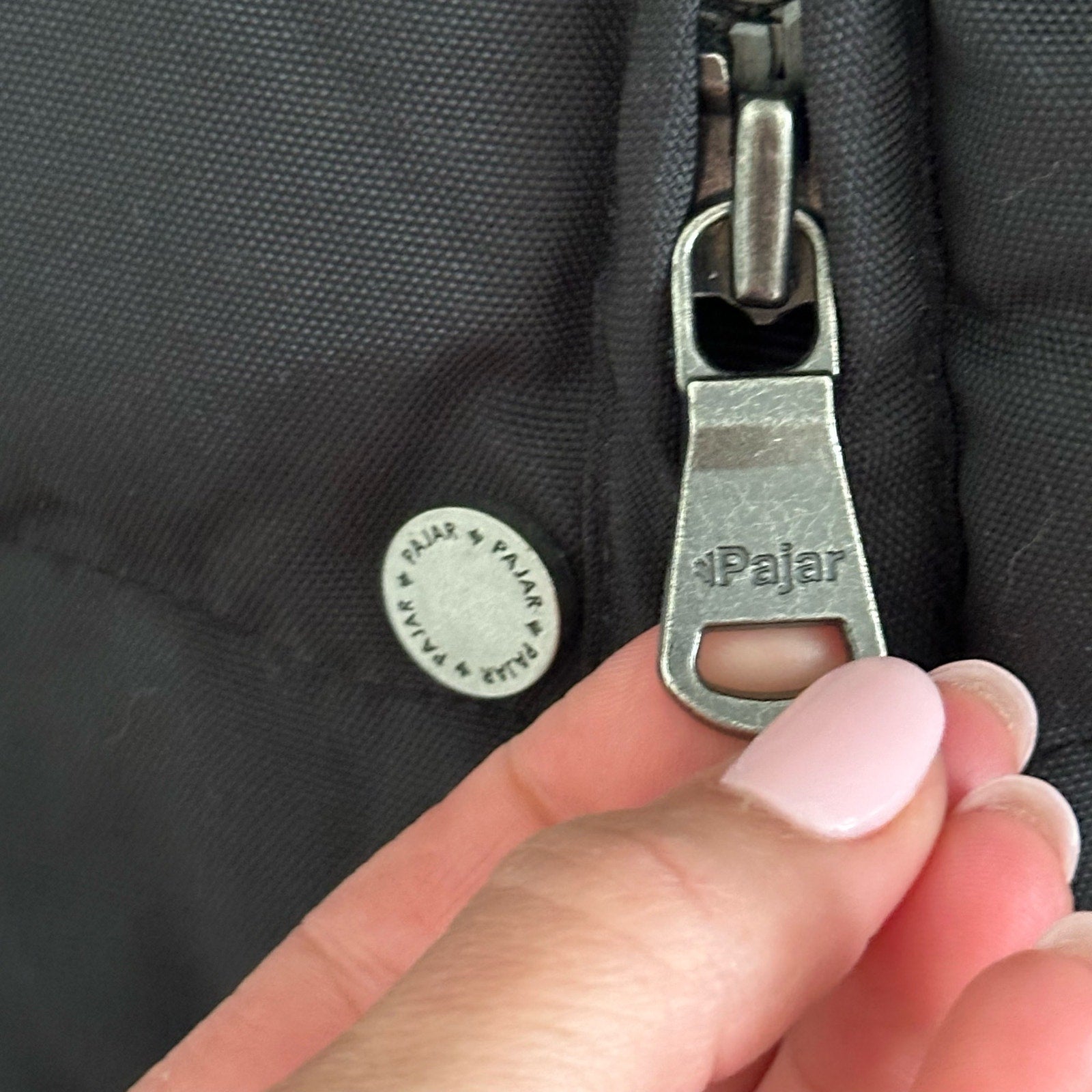 Details: Pajar Hypoallergenic Down Feather Quilted Puffer Parka Jacket - Size: XS- Color: Black- Material: 100% Nylon - Features: Hypoallergenic down feather. Full zip with button closure, long sleeve, mock neck, pockets, logo, winter, lined, button back, comfort, breathable, casual.