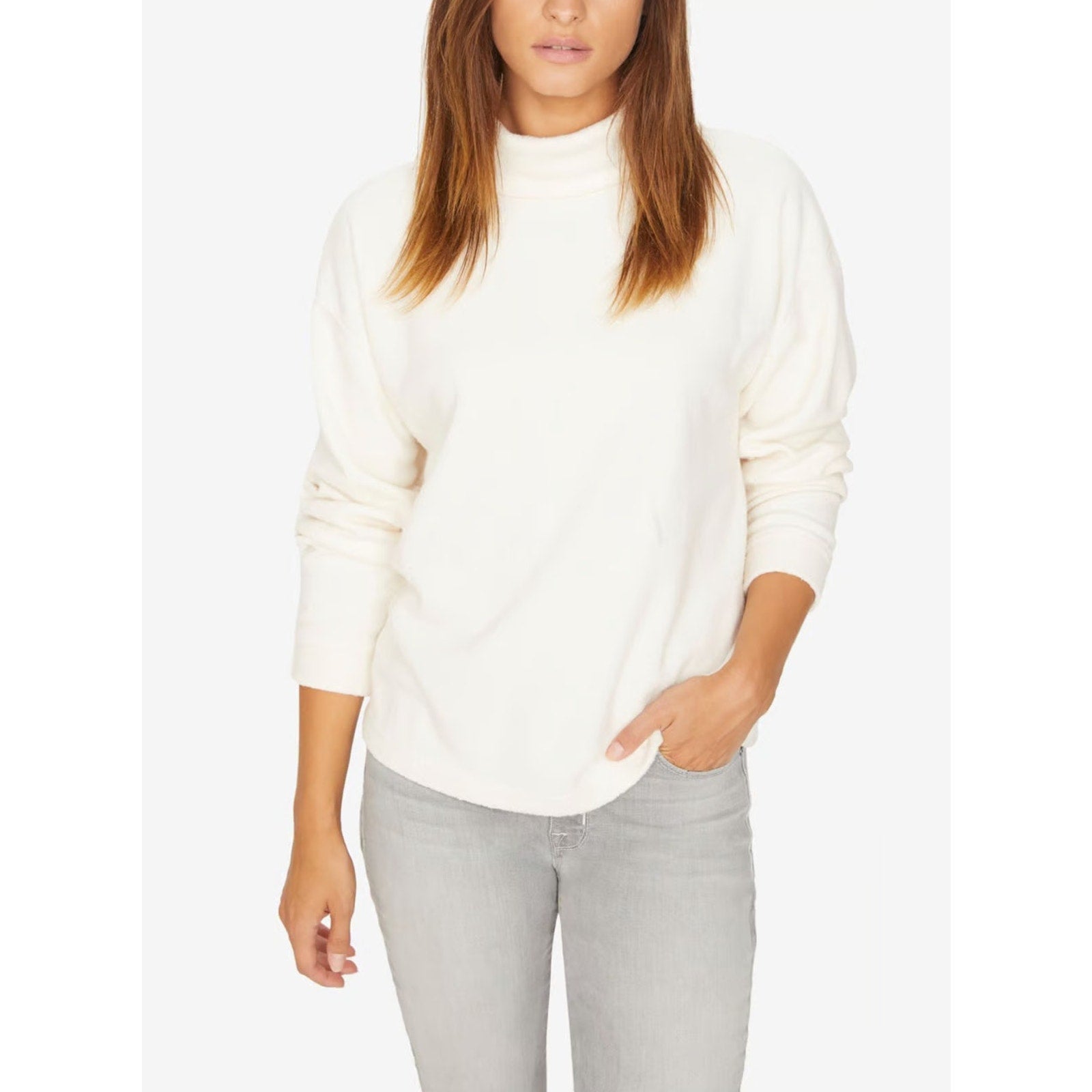 Details: Sanctuary Kyla Mock Neck Fleece Pullover Sweatshirt - Size: S- Color: Ivory - Material: 63% Cotton, 37% Polyester- Features: Mock neck, pullover, long sleeve, fleece, machine wash, raglan sleeve, comfort, breathable, casual.