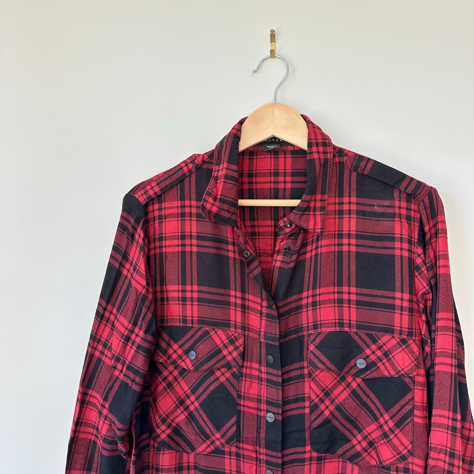 - Sanctuary Plaid Snap Front Long Sleeve Shirt