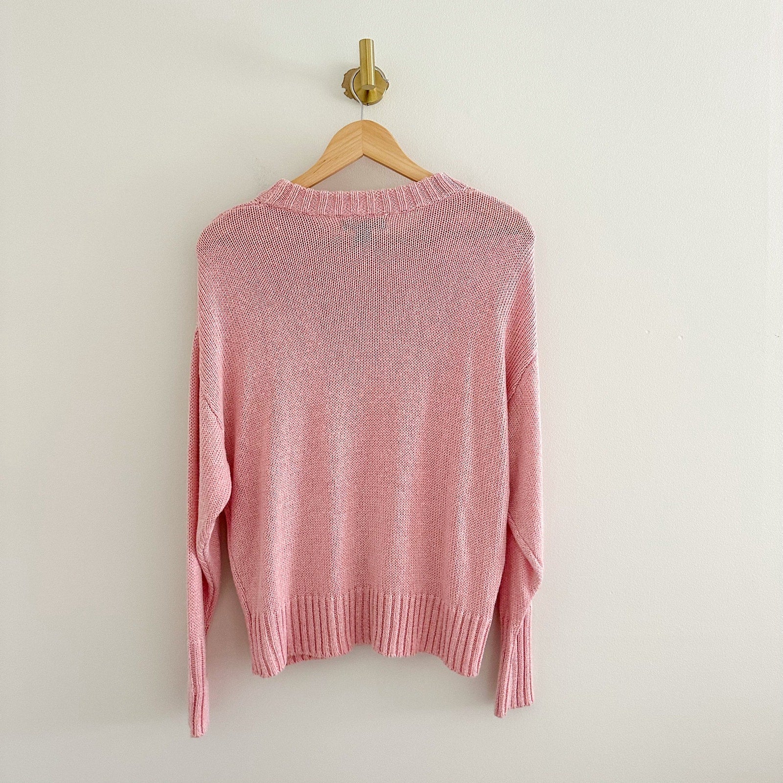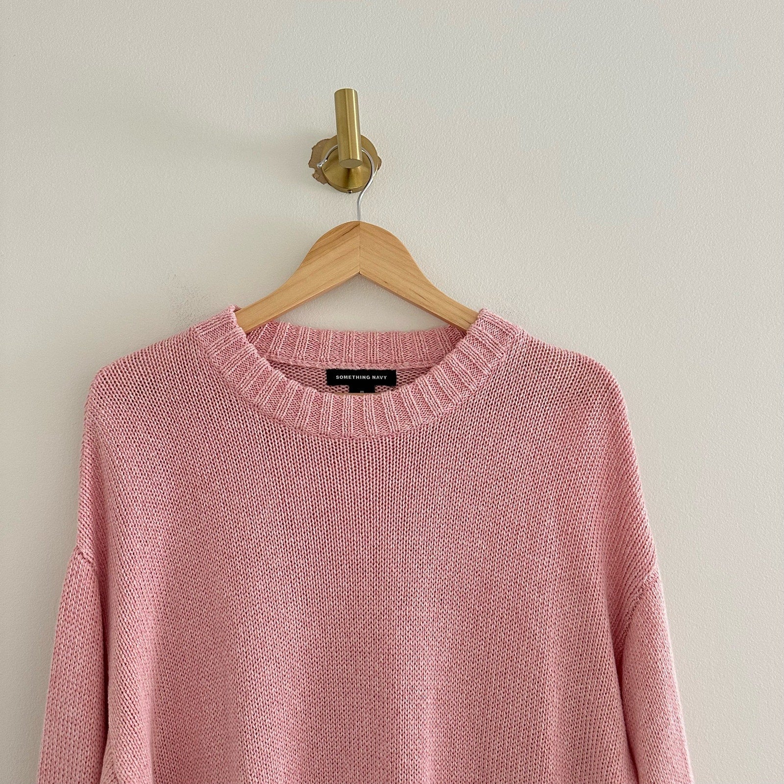 Details: Something Navy Long Sleeve Crew Neck Knit Pullover Sweater- Size: M- Color: Pink- Material: 88% Viscose, 12% Polyester- Features: Long sleeve, crew neck, knit, pullover, dry clean only, ribbed collar, sleeve and cuffs, tight-knit, comfort, breathable, casual.