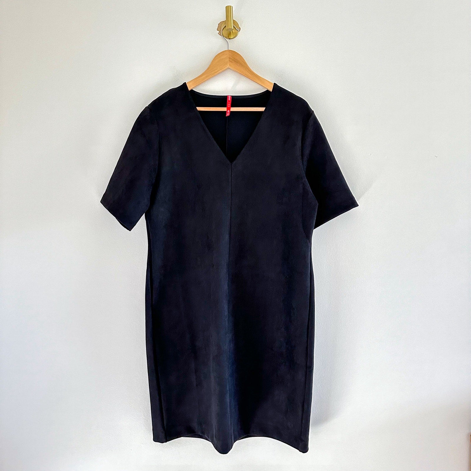 Details: Spanx Faux Suede Column V-Neck Short Sleeve Dress - Size: