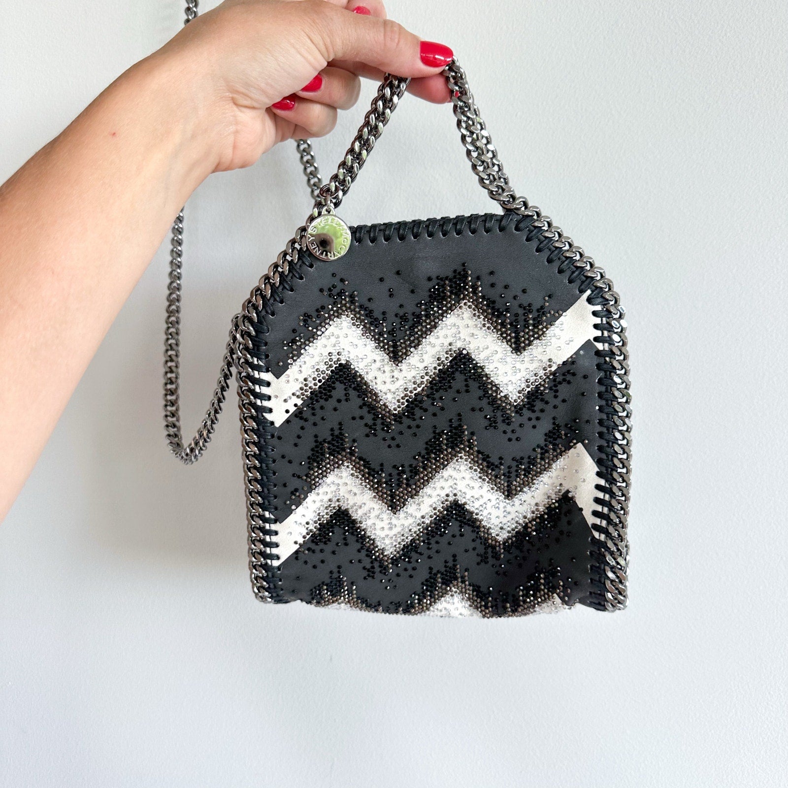 - Stella McCartney Beaded Embellished Chevron Falabella Crossbody Bag