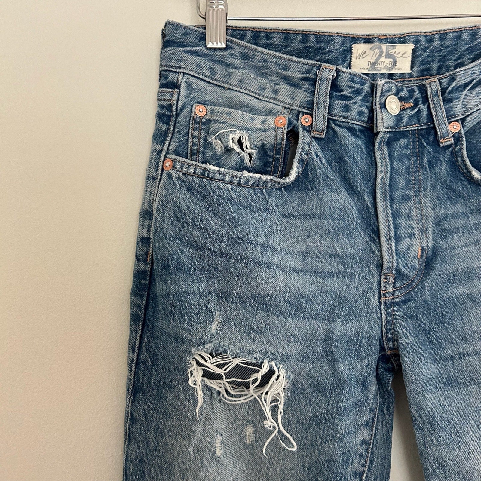 Details: We The Free Good Times Relaxed Distressed Cropped Jeans - Size: 25- Color: Blue (November Rain) - Material: - Features: Relaxed pattern, distressed, cropped, belt loops, zipper fly with button waist, logo, 5-pocket styling, high rise waist, denim, medium wash, comfort, breathable, casual.Want to buy this on Poshmark? Shop this item & 1500+ more here: https://poshmark.com/closet/handpickedbyhan