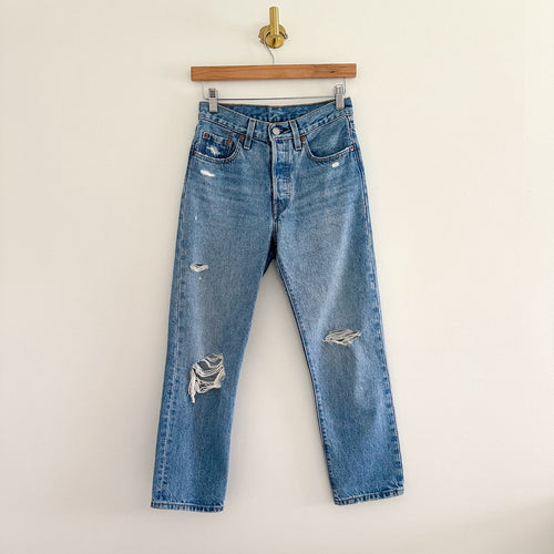 Levi's 501 Distressed High Rise Button-Fly Denim Straight Jeans Blue 24