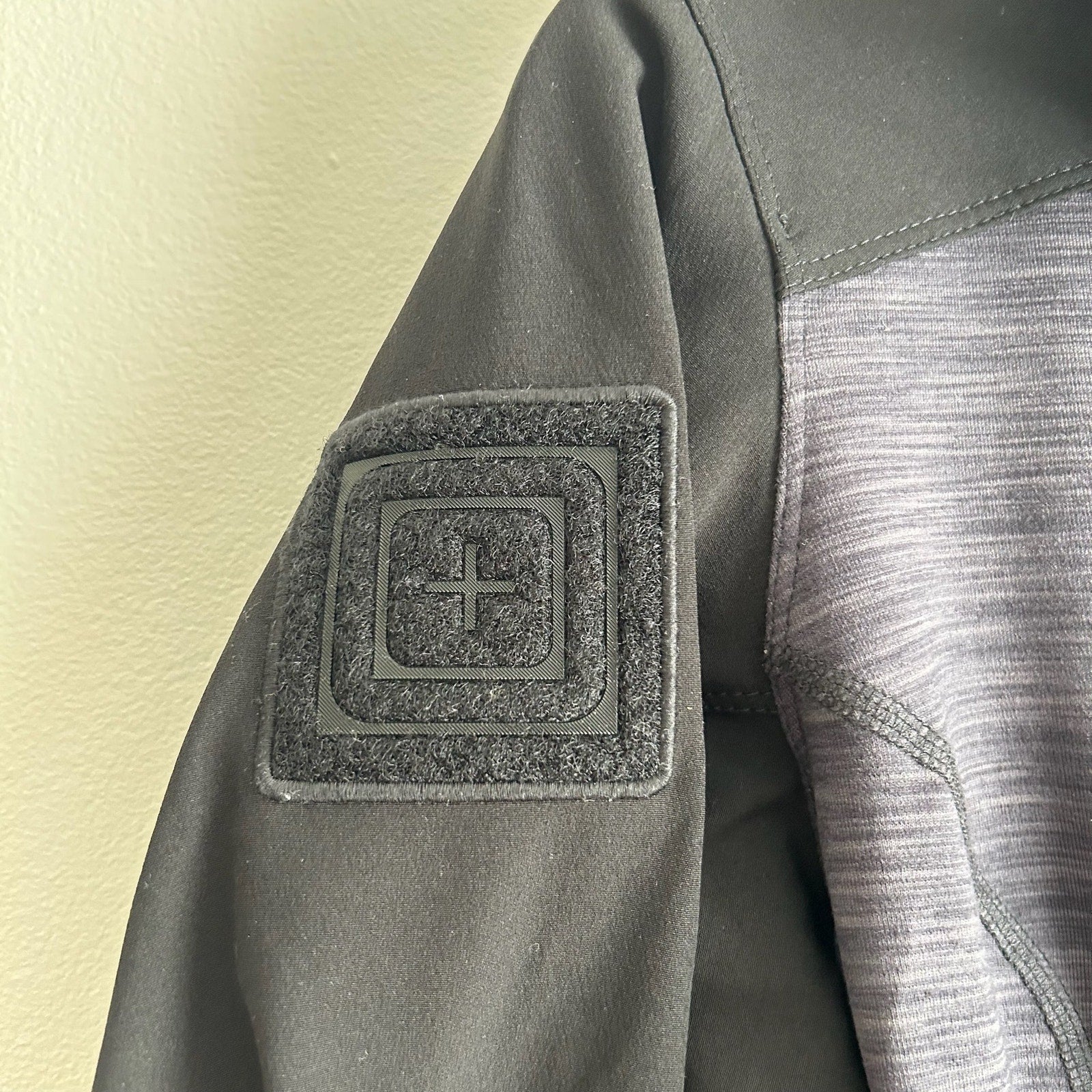 Details: 5.11 Tactical 1/4 Zip Mixed Media Long Sleeve Pullover - Size: Women's S - Color: Gray/Black - Features: 1/4 zip, mock neck, long sleeve, logo, raglan sleeve, stretch, comfort, breathable, outdoor, casual.