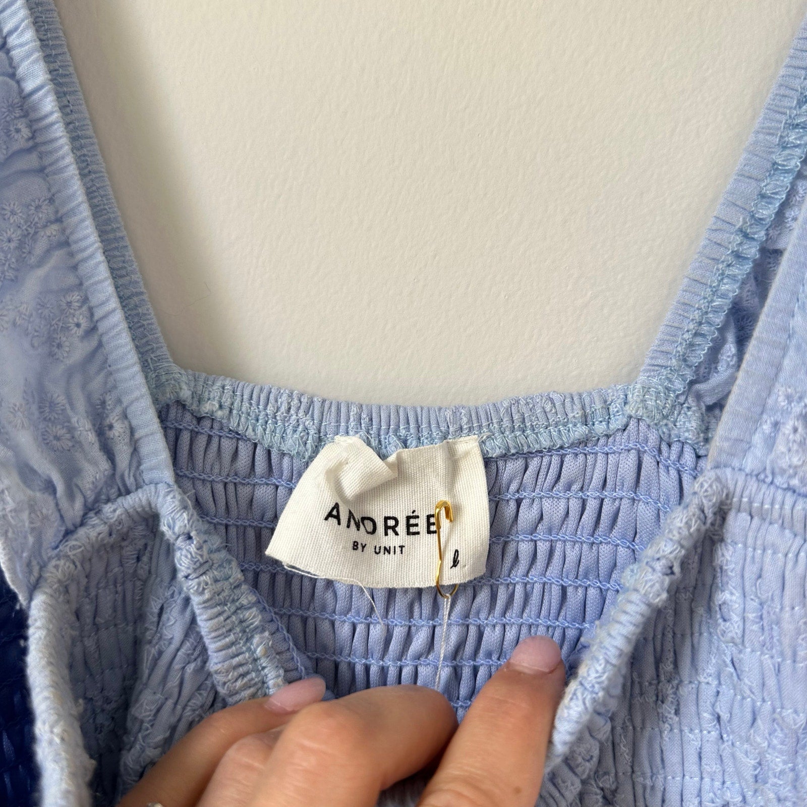 - Andree by UNIT Smocked Eyelet Sleeveless Square Neck Casual Mini Dress