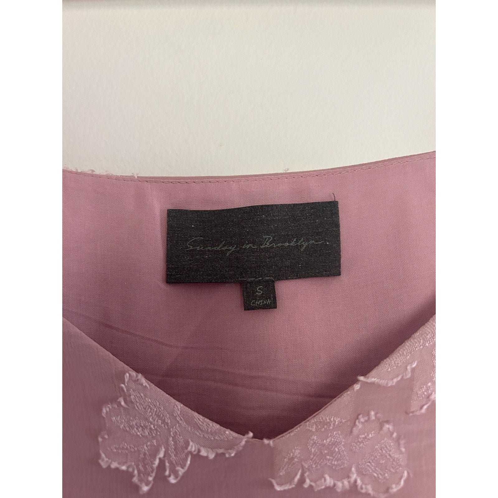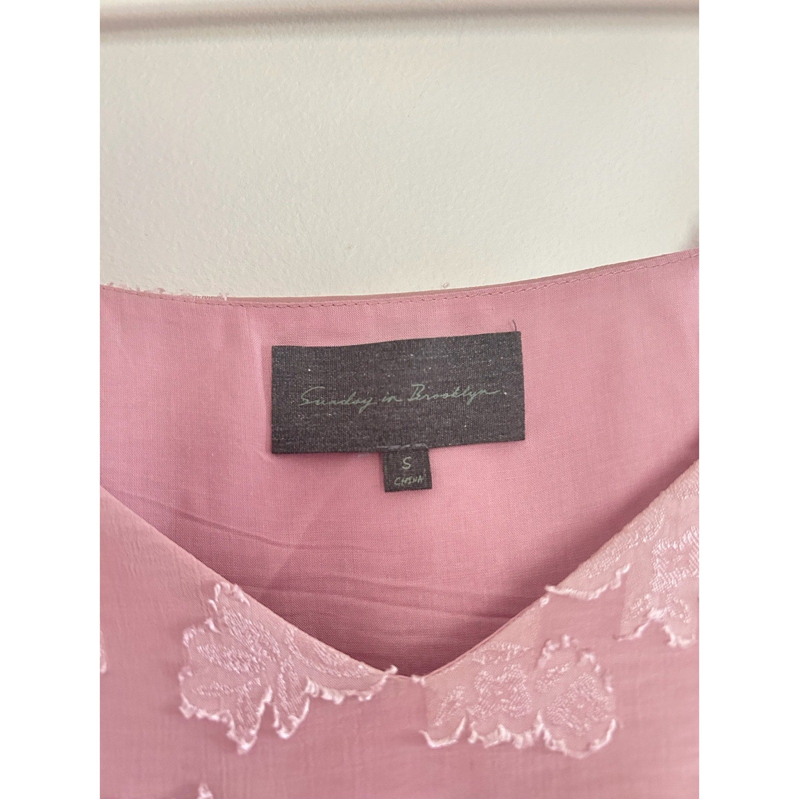 Details: Anthropologie Sunday In Brooklyn Floral Lace V-Neck Pullover Camisole Top - Size: Small- Color: Pink- Material: 100% Polyester- Features: Floral lace, V-neck, lined, adjustable strap, spaghetti strap, hand wash, comfort, breathable, casual.