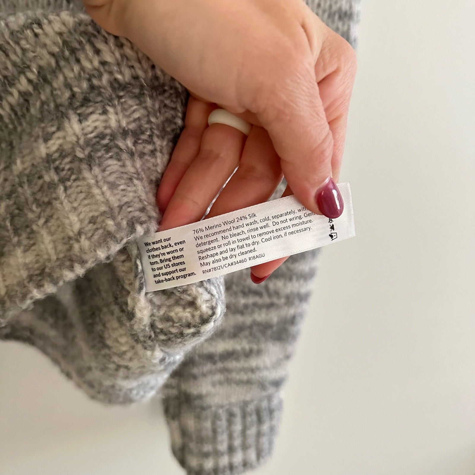 Details: Eileen Fisher Knit Crew Neck Long Sleeve Pullover Sweater- Size: M- Color: Gray- Material: 76% Merino Wool, 24% Silk- Features: Knit, crew neck, long sleeve, tight-knit, pullover, hand wash, comfort, breathable, casual. R18AGU