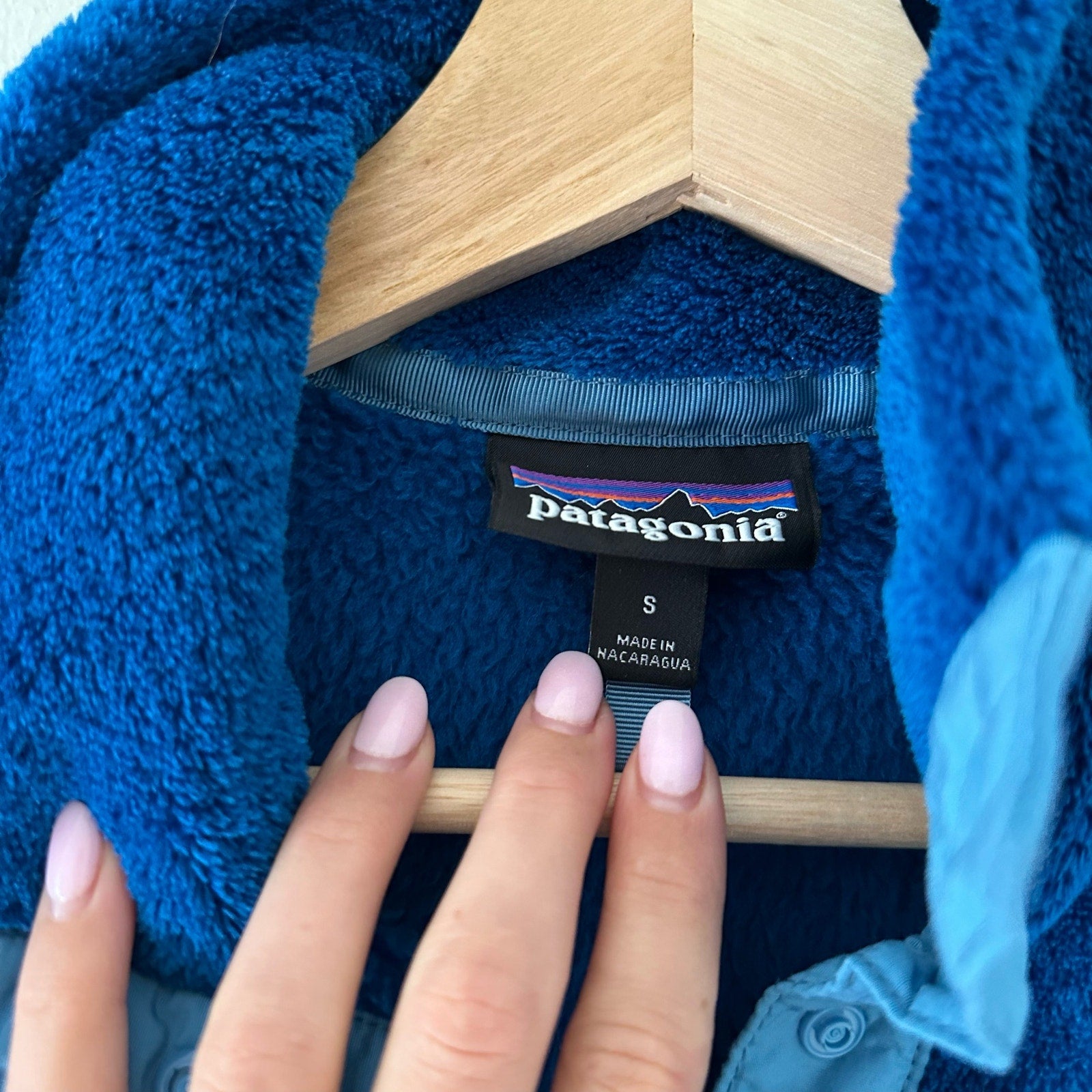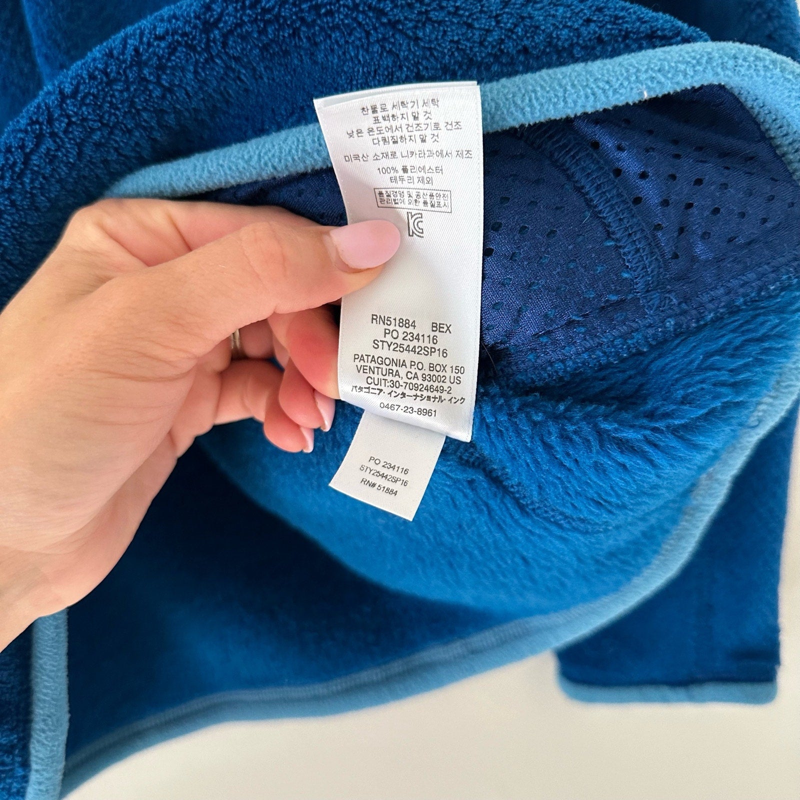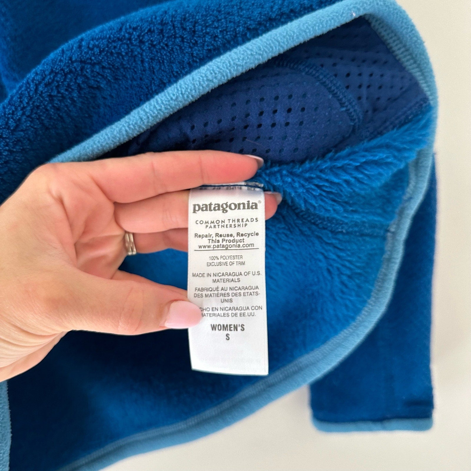 Details: Patagonia Re-Tool Snap-T Fleece Pullover Jacket - Size: S- Color: Blue- Material: 100% Polyester- Features: Snap closure, pullover, mock neck, long sleeve, lined, fleece fabric, bodywarmer, pockets, embroidered logo, comfort, breathable, casual, outdoor.