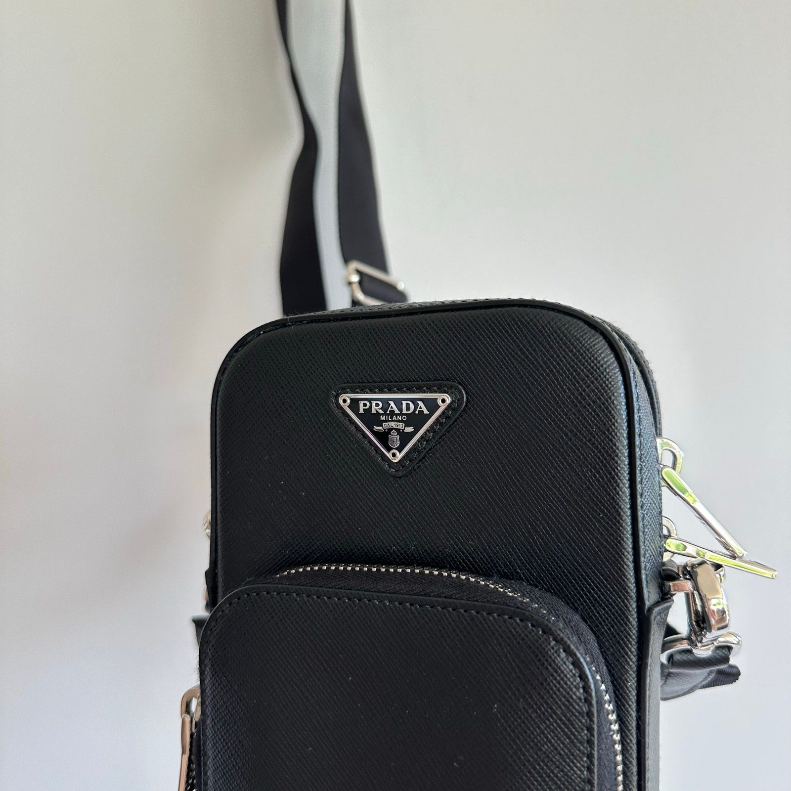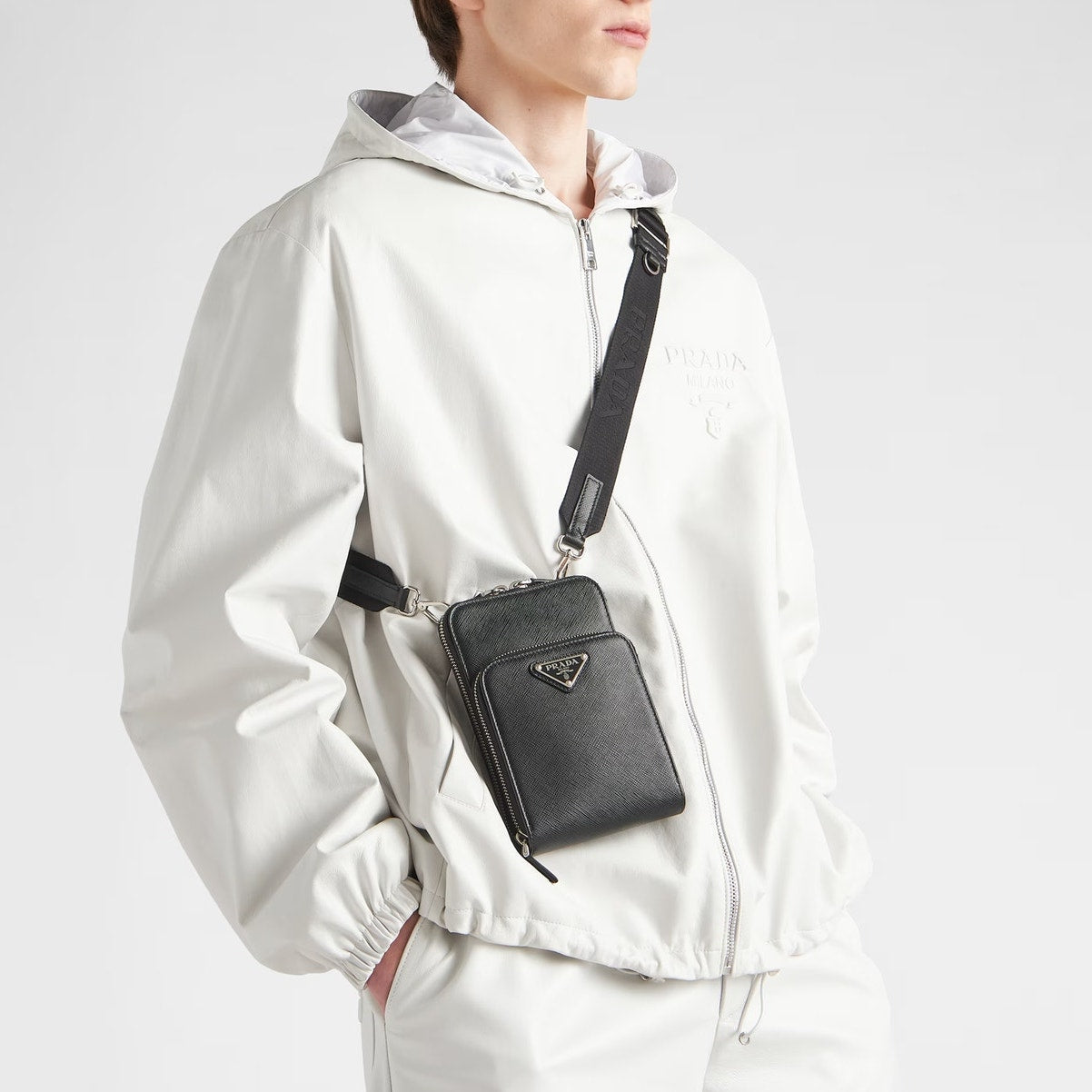 - PRADA Saffiano Leather Zip-Around Smartphone Crossboday Bag
