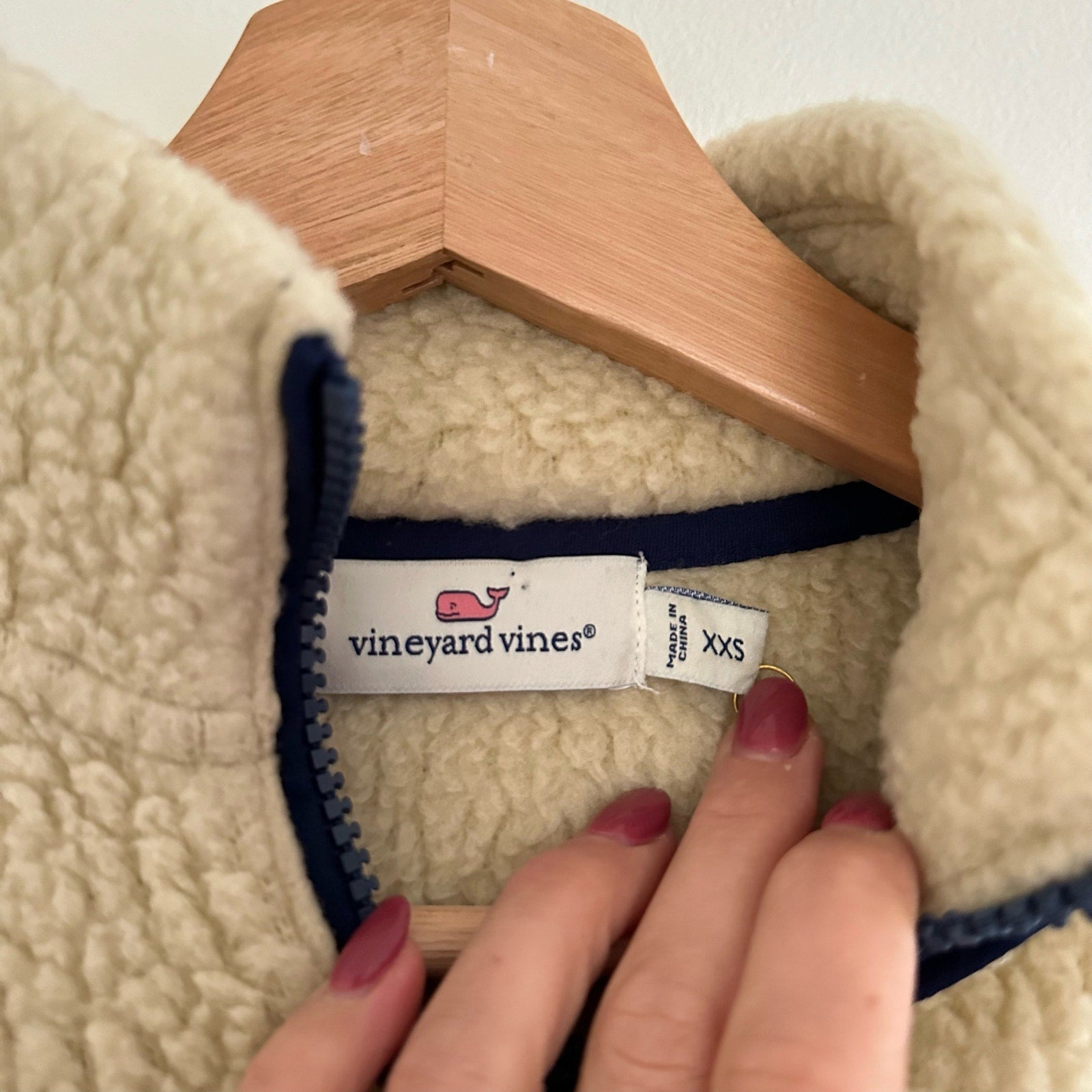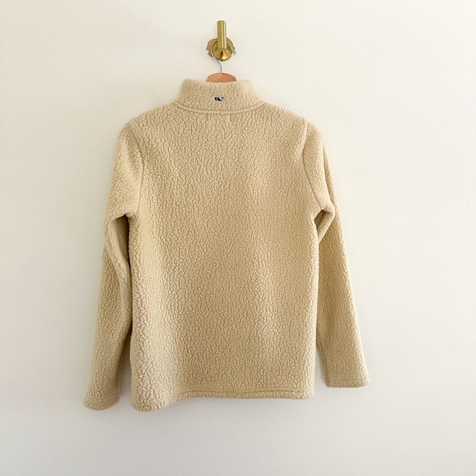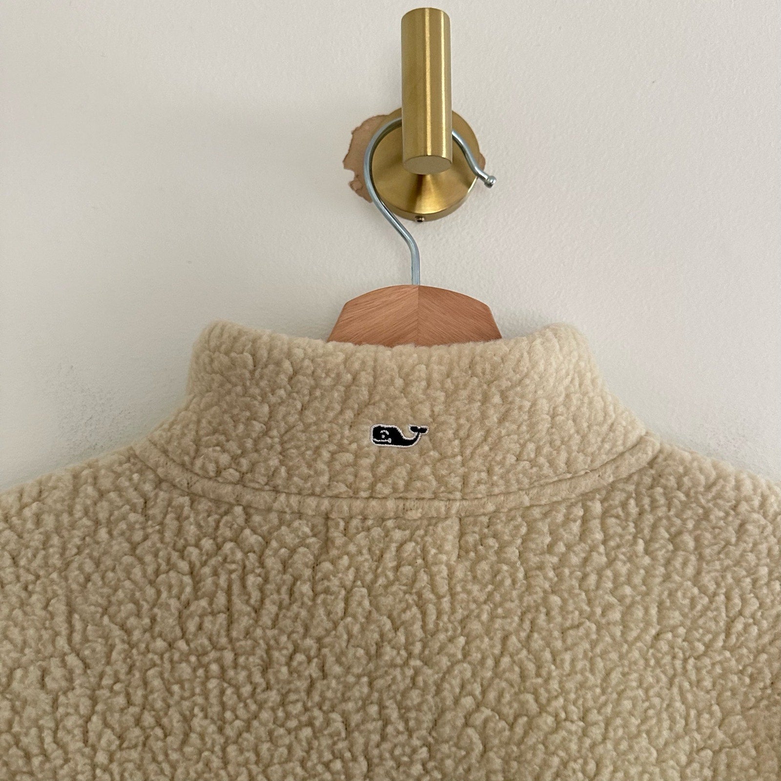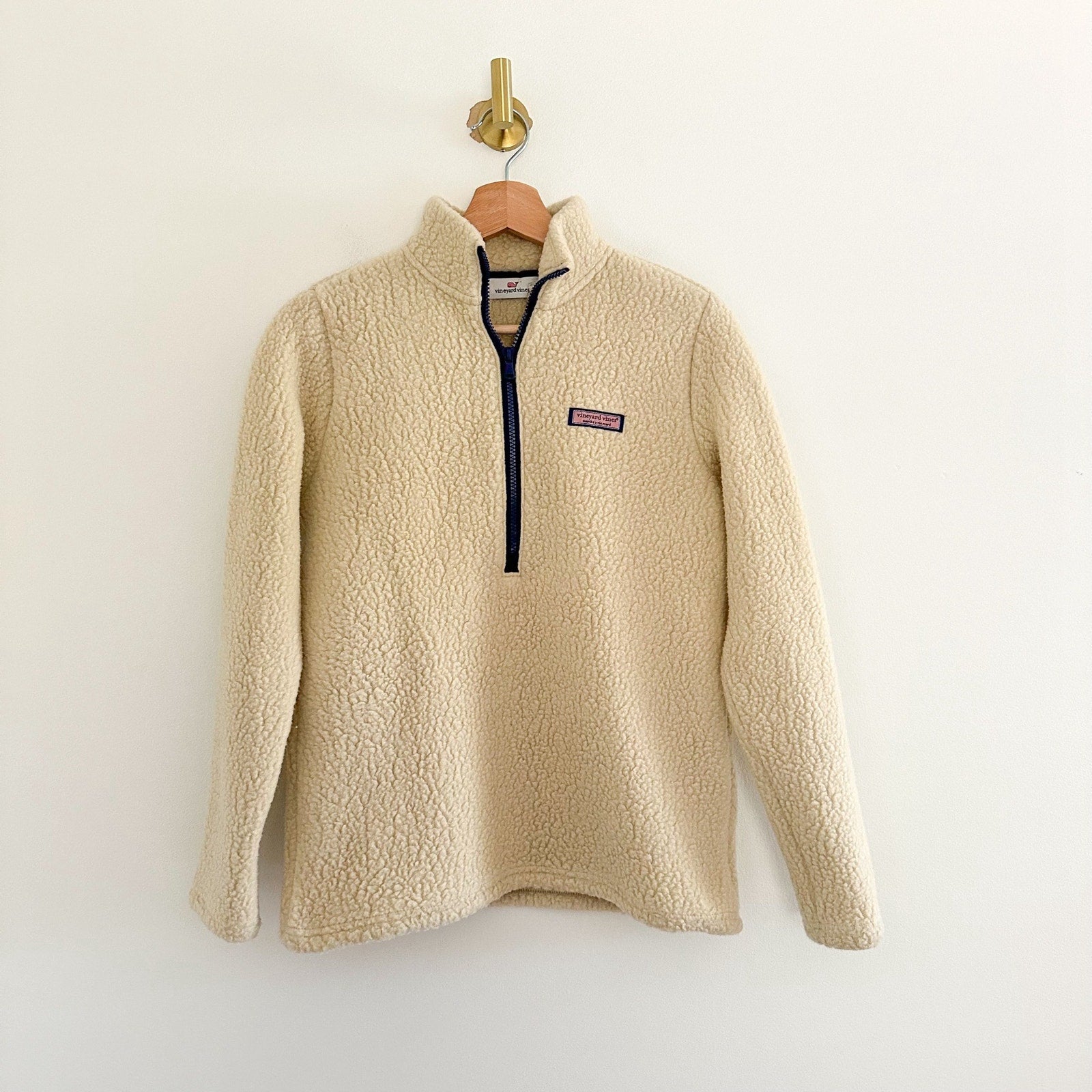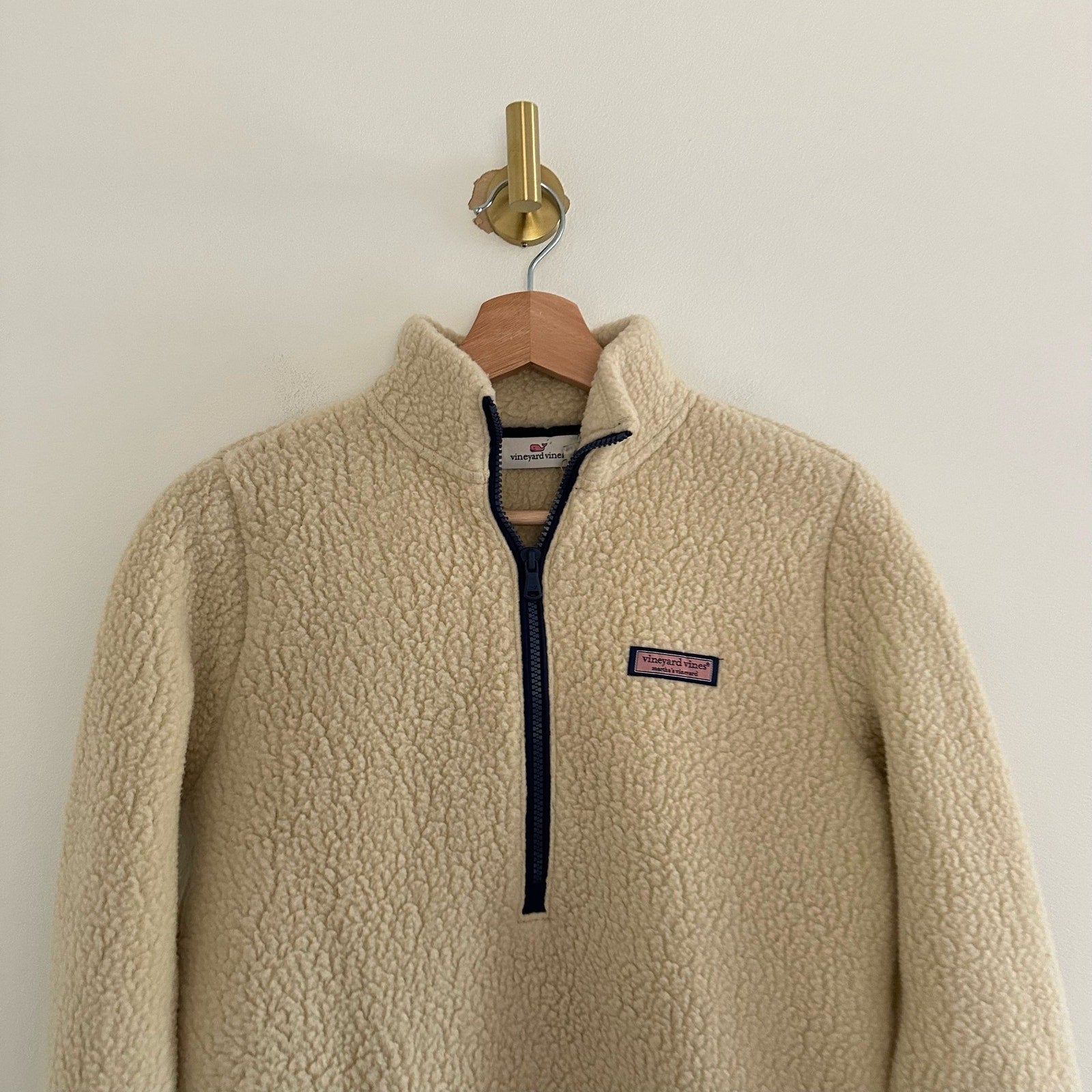 Details: Vineyard Vines Heritage Sherpa 1/2-Zip in Camel - Size: XXS- Color: Cream- Material: 100% Polyester- Features: Fleece, 1/4 zip, long sleeve, embroidered, logo, machine wash, comfort, breathable, casual. 200320