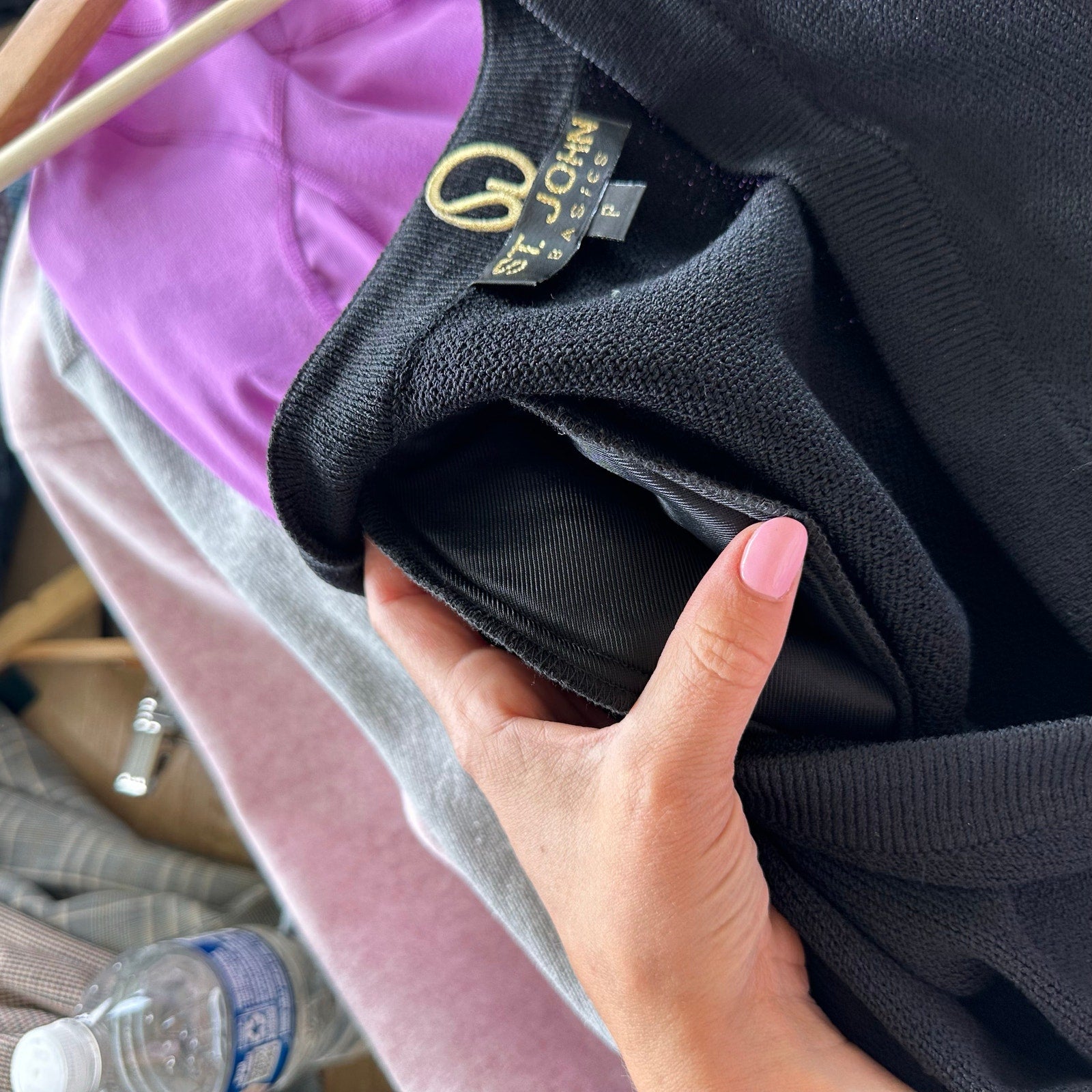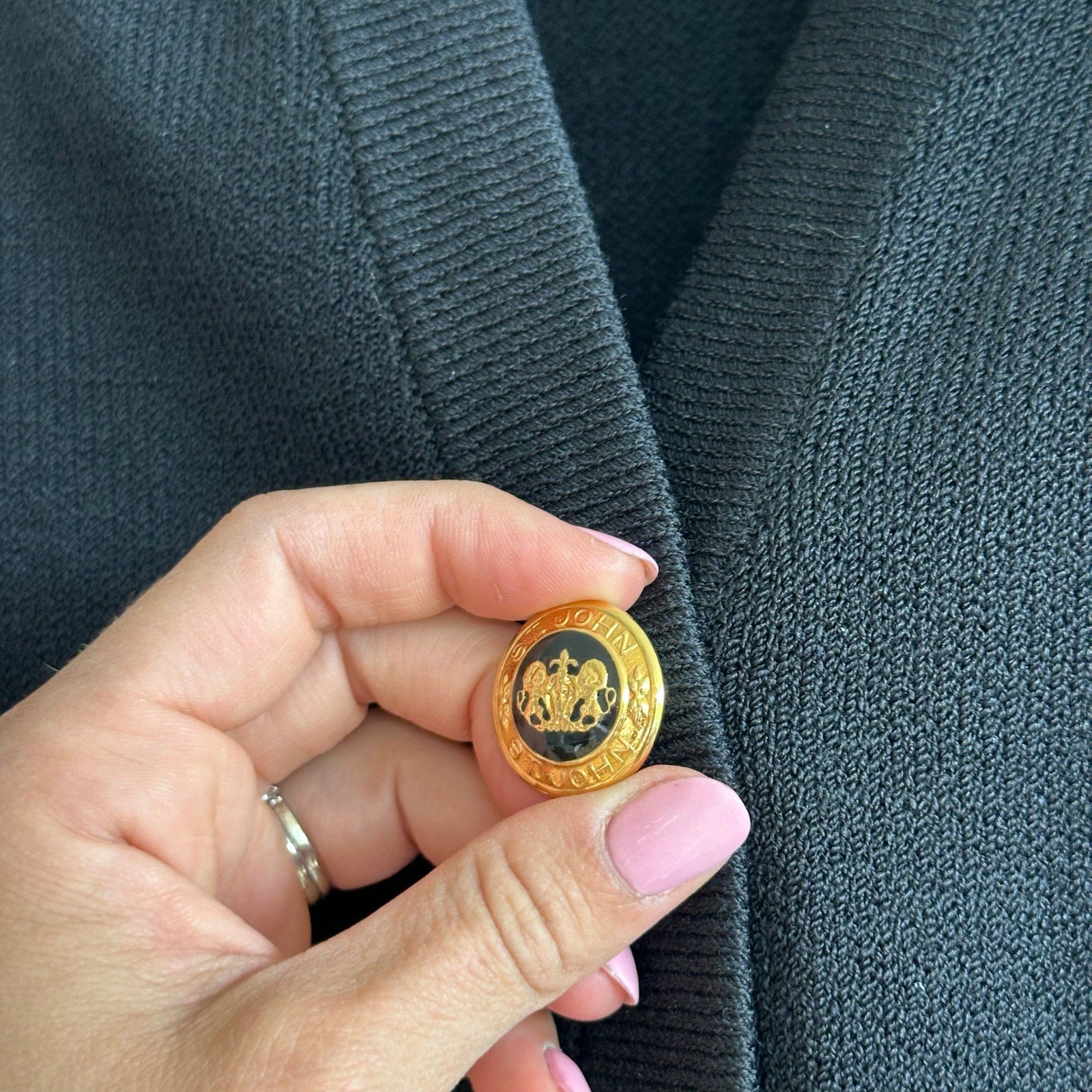 - Vintage ST. JOHN Basics Knit Gold Button Front Shoulder Pad Blazer